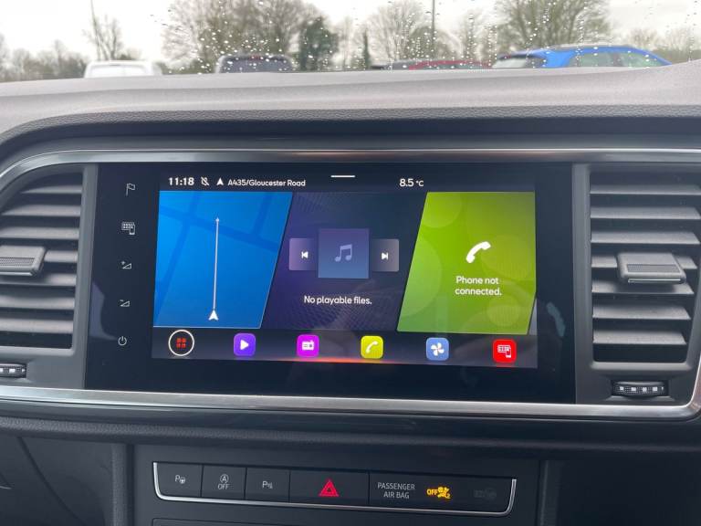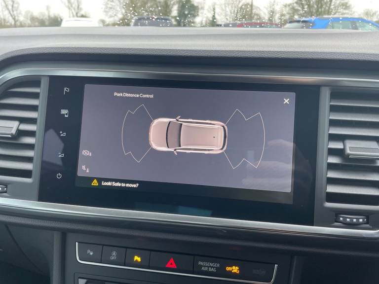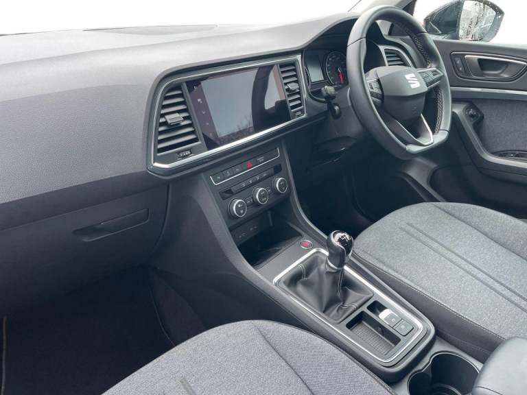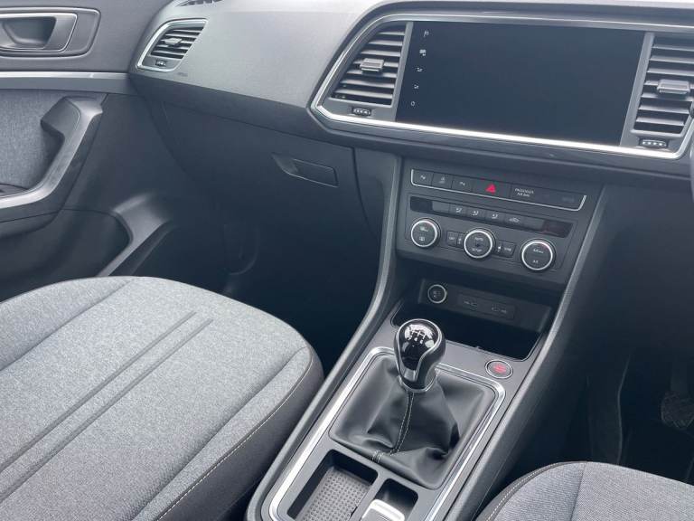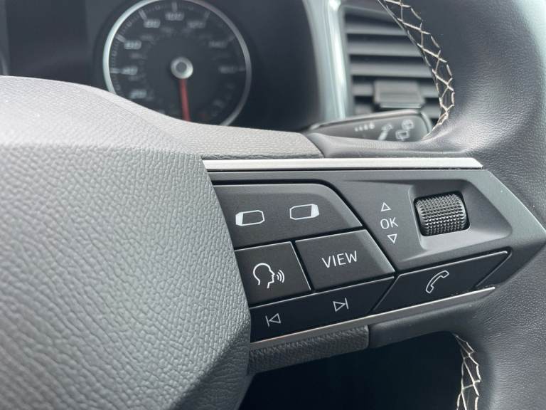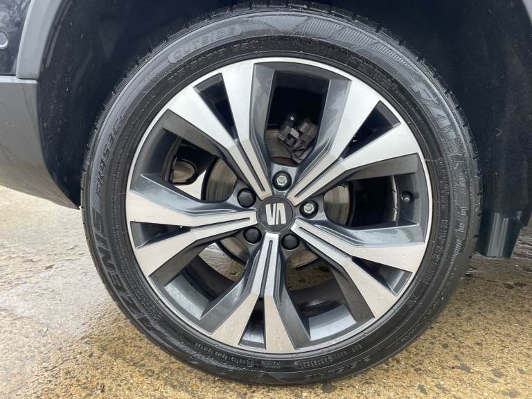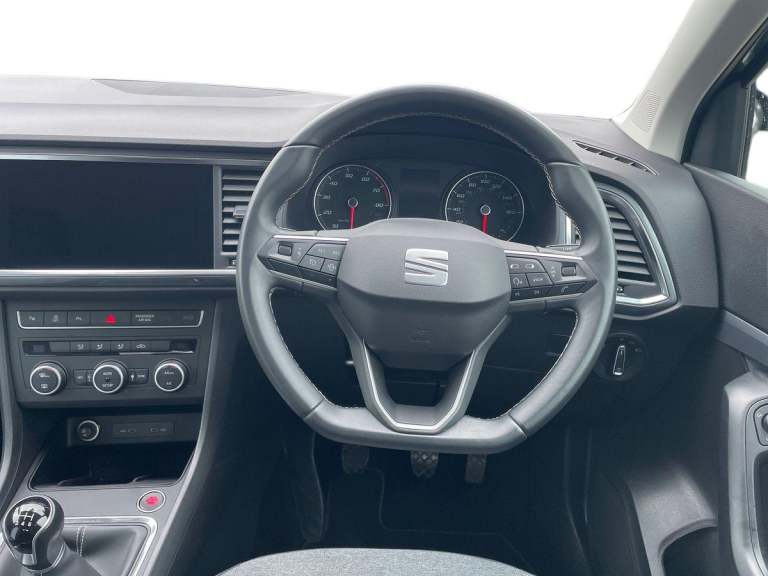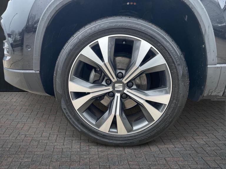..Cruise control system with speed limiter, E-call, Outside temperature gauge, PAS, SEAT drive profile with driving experience button - Normal, Sport, Eco and Individual mode, steering and throttle response, Self parking functionality (includes front and rear parking sensors), Trip computer, Wireless full link smartphone integration, Wireless phone charger, Steering wheel mounted audio/phone controls, Black wheel arch surrounds, Body colour bumpers, Chrome front grille frame, Chrome roof rails, Chrome side window trim, Daytime running lights, Door mirrors with welcome light silhouette, Dynamic headlight range control with self adjusting whilst driving, Electric adjustable/heated/folding door mirrors, Front and rear electric windows, Full LED headlamps with lens and LED front fog lamps with cornering function, LED rear tail lights with dynamic indicators, Rear fog lights, Rear side wing doors, Rear wash/wipe, Simulated exhaust pipes, 12V socket in front, 3 seat bench in 2nd row, 60/40 split folding rear seat, Cloth upholstery with front comfort seats, Dual zone climate control, Front and rear head restraints, Front centre armrest, Front seat back storage pockets, Height adjustable driver and passenger seat with lumbar adjustment, ISOFIX points in outer rear seats with top tether anchorage points, Leather steering wheel and gear knob, Rear armrest and easy back seat release mechanism from boot, Single front passenger seat, Storage compartment under driver's seat, Interior lighting pack - Ateca, Navigation system pack with DAB - Ateca, 3x3 point rear seatbelts, ABS, Traction control system (TCS), Electronic stability control (ESC) and Electronic differential lock system (XDS), Airbags - Driver and front passenger airbag with deactivation, front side, two curtain and driver's knee airbags, Electric parking brake with auto hold function, Front and rear seatbelt reminder, Front assist with autonomous emergency braking, Hill hold control, Manual rear child locks, Tiredness recognition system, Traction control, Tyre pressure monitoring system, Alarm, Keyless entry, Locking wheel bolts, Chrome interior detailing, 18'' Performance machined alloy wheels 36/2 in nuclear grey