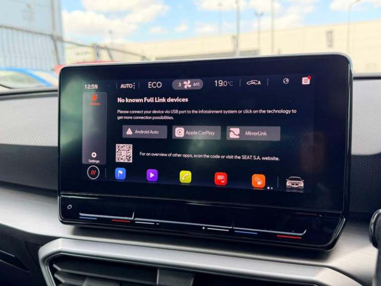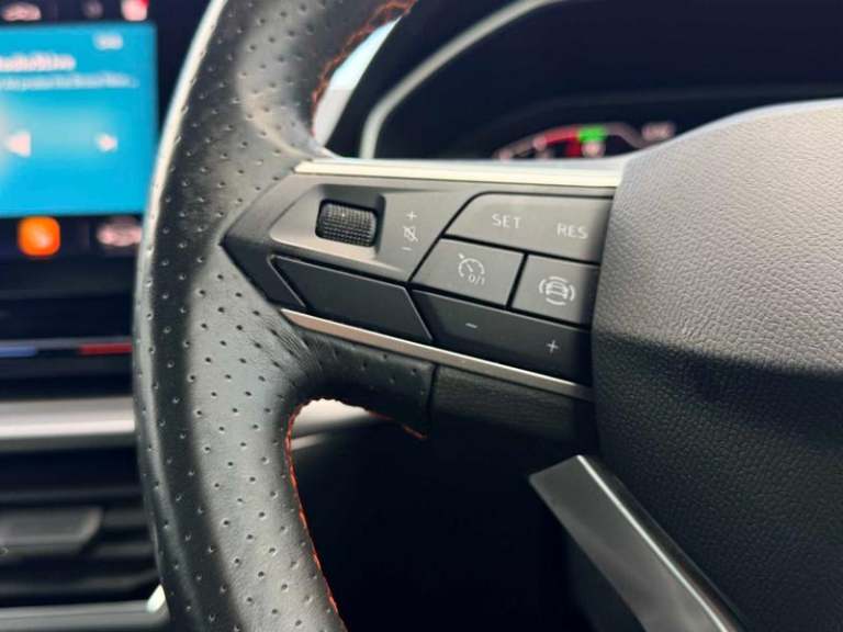 12V Power Supply in Centre Console, Four USB Type C Ports, Full Link Smartphone Integration - Mirror Link - Wireless Apple CarPlay - Wired Google Android Auto, Media System Plus with Navigation, SEAT Connect App, Seven Speakers, Wireless Device Charger, Cruise Control with Speed Limiter, Park Assist including Front and Rear Parking Sensors, SEAT Drive Profile, Tiredness Recognition System, Tyre Pressure Monitoring System, 17in Alloy Wheels - Dynamic Bi-Spoke, Dark Tinted Rear Windows, Electrically Adjustable Folding and Heated Door Mirrors, Emergency Tyre Repair Kit, FR Sport Bumpers, Front and Rear Electric Windows, Lockable Tailgate, Front LED Fog Lights with Cornering Function, LED Headlights with Dynamic Turn Signals, Separate Daytime Running Light with Automatic Headlight Control and Automatic Coming Home Feature, Ambient Lighting, Ambient Lighting in Door Trim, Auto Dimming Rear View Mirror, Chrome Interior Detailing, Digital Cockpit, Driver and Passenger Seat Manual Height Adjustment, Driver and Passenger Seat with Lumbar Adjustment, Folding Boot Cover, Front Centre Armrest, Front Seat Back Storage Pockets, Front and Rear Reading Lights - Four, Height-Adjustable Front and Rear Headrests - with Third Headrest in Rear, Illuminated Front Door Sill, Interior Lighting, KESSY Go - Keyless Start, Leather Flat Bottomed - Perforated Steering Wheel with Red Stitching and FR Logo, Multi Coloured Ambient Lighting, Rain Sensing Wipers, Rear Bench Seats with 60-40 Split and Armrest,