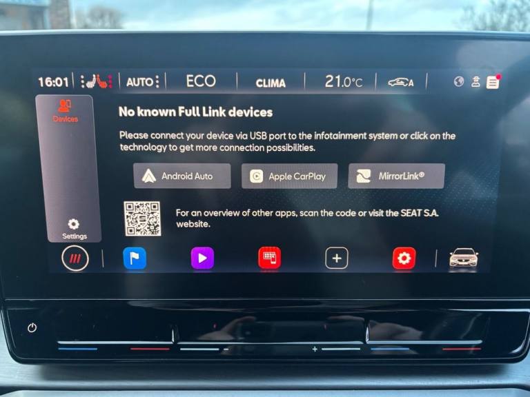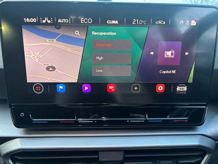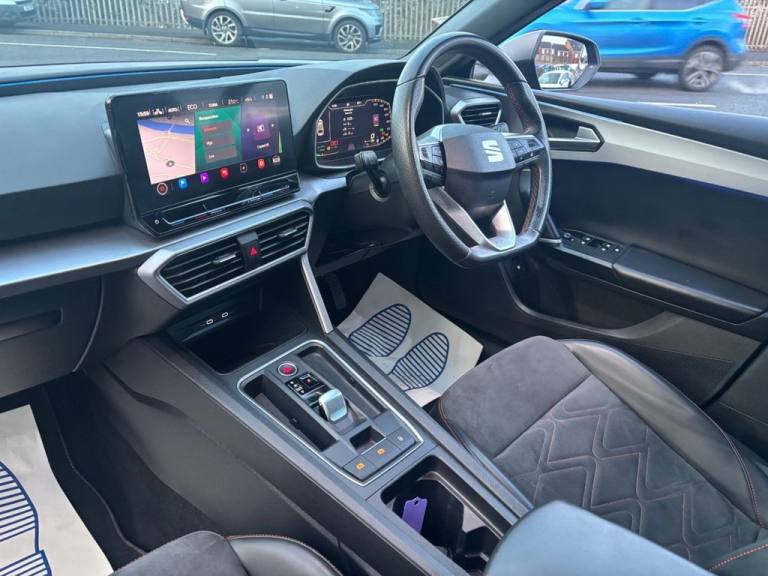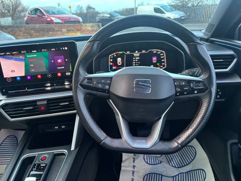 Service history 2 keys DAB radio Bluetooth Apple CarPlay Heated seats phone charging Parking sensors 12 months MOT 6 months warranty This 2021 SEAT Leon eHybrid FR Sport boasts a clear vehicle history, offering you peace of mind. This striking FR Sport model is powered by an efficient 1.4 litre petrol plug in hybrid engine, meeting Euro 6 emission standards. It comes equipped with sophisticated LED headlights featuring dynamic turn signals and automatic coming home functionality, alongside separate daytime running lights with automatic headlight control. Inside, youll find a heated, leather flat bottomed, perforated steering wheel for added comfort, and a three zone climate control system to ensure everyone enjoys the perfect temperature. Stay seamlessly connected with Full Link smartphone integration, offering wireless Apple CarPlay and wired Google Android Auto. These advanced features, combined with the plug in hybrid technology and the sporty FR Sport trim, set this SEAT Leon apart from other vehicles in its class. It represents a smart choice for those seeking a modern, well equipped, and environmentally conscious driving experience..12V Power Supply in Centre Console, 12v Socket in Loadspace, 18in Alloy Wheels - Performance Machined, Ambient Lighting, Ambient Lighting in Door Trim, Anti-Lock Brakes - ABS, Anti-Theft Alarm System - Interior Monitoring - Backup Horn and Towing Protection, Auto Dimming Rear View Mirror, Black Interior Roof, Brake Control System - ESC and Brake Booster, Charging Cable - Mode 2, Chrome Interior Detailing, Cruise Control with Speed Limiter, Dark Tinted Rear Windows, Digital Cockpit, Driver and Front Passenger Airbags with Front Passenger Airbag De-Activation - Front Side - Curtain Airbag, Electric Parking Brake, Electrically Adjustable Folding and Heated Door Mirrors with Memory, Electro-Mechanical Power Steering - Speed-Sensitive, Electronic Differential Lock System - XDS - Dynamic Traction Support, Emergency Tyre Repair Kit, Extended Safety System, FR Sport Bumpers, Four USB Type C Ports, Front Assist, Front Centre Armrest, Front LED Fog Lights with Cornering Function, Front Seat Back Storage Pockets, Front and Rear Electric Windows, Front and Rear Reading Lights - Four, Full Link Smartphone Integration - Mirror Link - Wireless Apple CarPlay - Wired Google Android Auto, Heated Leather Flat Bottomed - Perforated Steering Wheel, Height-Adjustable Front and Rear Headrests - with Third Headrest in Rear, ISOFIX Points in Outer Rear Seats with Top Tether Anchorage Points, Illuminated Front Door Sill, Interior Lighting, Interior Wraparound Lighting, KESSY Go - Keyless Start, LED Headlights with Dynamic Turn Signals, Lane Keeping System, Lockable Tailgate, Media System Plus with Navigation, Multi Coloured Ambient Lighting, Park Assist including Front and Rear Parking Sensors, Powered Driver Seat with Memory and Manual Height Adjustment for Passenger, Powered Lumbar Adjustments on Drivers Side - Manual on Passenger Side, Rain Sensing Wipers, Rear Bench Seats with 60-40 Split and Armrest, Rear Fog Light, Roof Rails - Black, SEAT Connect App, SEAT Drive Profile, Seatbelt Reminder - Front and Rear, Separate Daytime Running Light with Automatic Headlight Control and Automatic Coming Home Feature, Seven Speakers, Sliding Boot Cover, Sports Suspension, Start-Stop and Regenerative Braking, Sunvisors with Illuminated Mirrors, Three-Zone Climate Control, Tiredness Recognition System, Tool Kit, Tyre Pressure Monitoring System, Wireless Device Charger