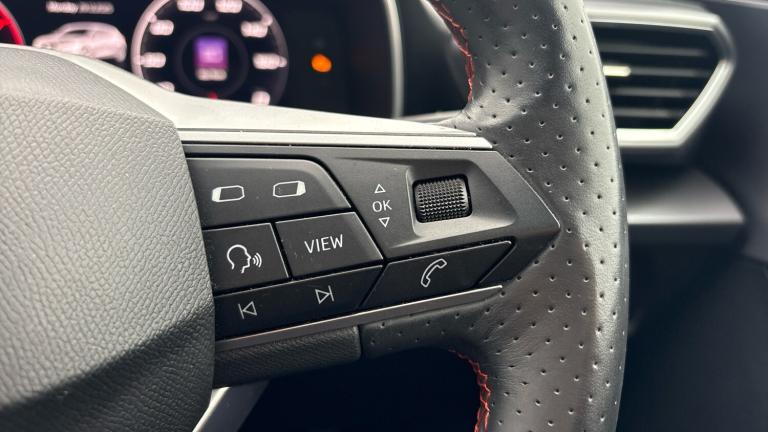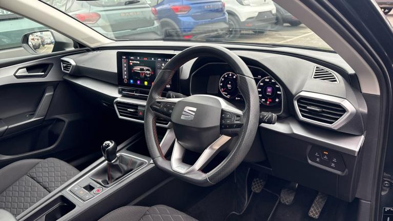 This 2021 SEAT Leon TSI EVO FR offers a compelling blend of style and practicality. Powered by a Euro 6 compliant 1.5 litre petrol engine, this FR trim model delivers an engaging driving experience with a 0-62mph acceleration time of 9.4 seconds. Its design is enhanced by LED headlights featuring dynamic turn signals, ensuring excellent visibility and a modern aesthetic. For added convenience and safety, it includes a rear view camera with parking assistance, making manoeuvring in tight spaces straightforward.Beyond its impressive performance, this SEAT Leon boasts a notably large boot space, providing ample room for shopping, luggage, or sports equipment. The combination of its efficient Euro 6 engine, responsive acceleration, and advanced lighting technology positions this Leon as a superior choice for those seeking a well equipped and versatile hatchback. The inclusion of parking assistance further underlines its user friendly design, making it an attractive option for everyday driving..Air Conditioning, Climate Control, Metallic Paint, Cruise Control, Satellite Navigation, DAB Radio, Bluetooth, Parking Sensors, Stop Start, USB, Keyless Entry-Push Button Start, Apple-Android Play, Auto Lights, Electric Folding Mirrors, Lane Departure& Rain Sensors, Rear wash/wipe, Electric front/rear windows, Dark tinted rear windows, Windshield wiper intermittent control with light/rain sensor, ABS, Hill hold control, Brake control system - ESC and brake booster, Electronic parking brake, Rear disc brakes, Sports suspension, Full link smartphone integration with Mirror Link, wireless Apple CarPlay and wired Google Android Auto, E-call, Park assist (inc front/rear parking sensors), Power assisted speed sensitive electro-mechanical steering, SEAT drive profile with 4 modes (Eco/Normal/Sport/Individual), throttle response, Front assist with forward collision warning braking reaction to vehicles, pedestrians and cyclists, Lane assist, Rear view camera