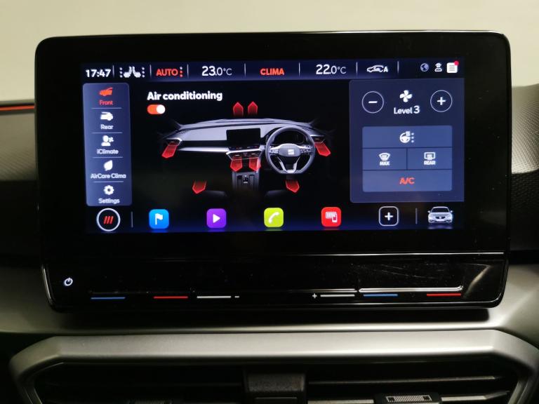 Experience the thrill of driving with this stylish grey Seat Leon FR Sport Hatchback. Enjoy the comfort of heated seats, seamless connectivity with Apple CarPlay, and effortless journeys using built-in Sat Nav. Parking is a breeze thanks to Park Assist, front and rear sensors, and keyless start adds a touch of convenience. LED headlights enhance both looks and visibility, while dual-zone climate control ensures you travel in comfort every time. Cruise control completes this sporty, well-equipped package. 2 services recorded, last serviced on 16/02/2026 at 31,992 miles. MOT to 26/07/2026. Visit our website for service history, online valuation, full vehicle specification plus multiple images. This vehicle is VAT qualifying. Any feature/option specified here is from 3rd party data. We cannot guarantee the accuracy of any specification supplied by a 3rd party. We recommend that you physically check the specification of the vehicle on site prior to purchase. This information does not form part of the buying contract. Terms & Conditions apply. We have over 2,000 cars available from our 10 national branches, check our website to see all our stock. Our Trustpilot rating is 4.4/5 with over 9,000 reviews.