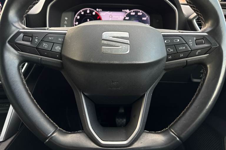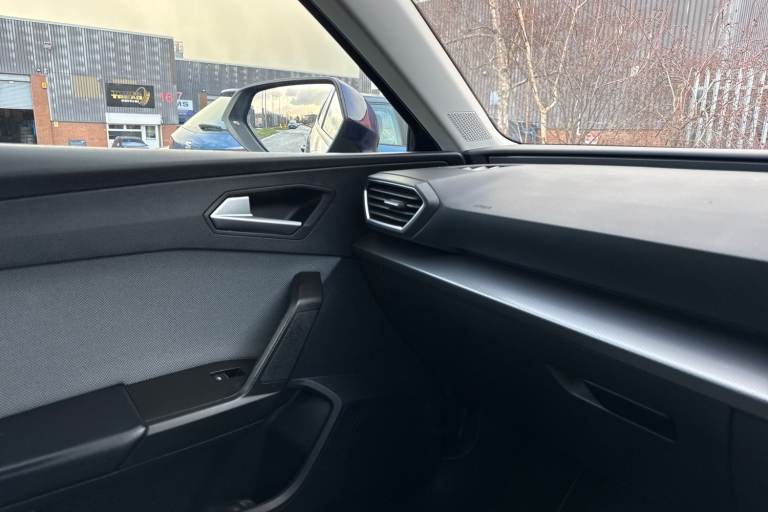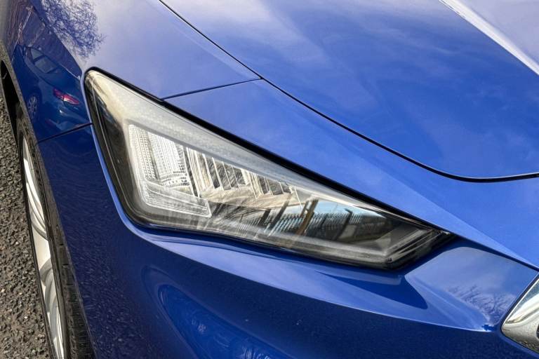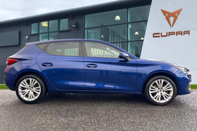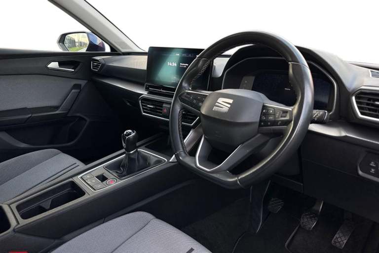 Finished in striking Mystery Blue, this SEAT Leon 1.5 TSI EVO SE Dynamic is a stylish and efficient five door hatchback that meets Euro 6 standards and features stop/start technology for improved economy. Riding on 17 inch Dynamic alloy wheels, it delivers a confident and modern presence on the road, complemented by LED headlights and taillights with separate daytime running lights and automatic headlight control, as well as front LED fog lights with a cornering function for enhanced visibility. Inside, the cabin is contemporary and well equipped, featuring a Digital Cockpit that puts key driving information clearly in view, along with chrome interior detailing and ambient interior lighting for a refined feel. Comfort is enhanced by air conditioning, dark tinted rear windows, front and rear electric windows, and a dimming interior rear view mirror. The leather flat bottomed perforated steering wheel adds a sporty touch, while electro mechanical speed sensitive power steering ensures a smooth and responsive drive. Technology is at the heart of this Leon, with the Media System Plus including navigation and Full Link smartphone integration, offering Mirror Link, wireless Apple CarPlay and wired Android Auto. The SEAT Connect app keeps you connected on the move, while KESSY Go keyless start adds everyday convenience. Practical features include front seat back storage pockets, a lockable tailgate, and cruise control with a speed limiter for relaxed motorway driving. Safety and...