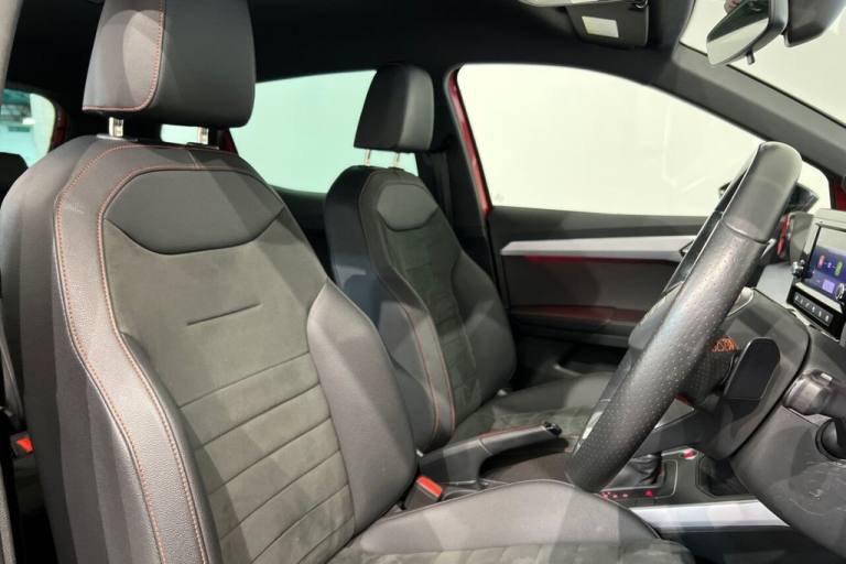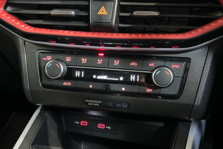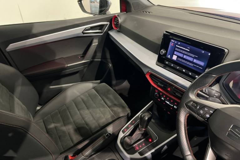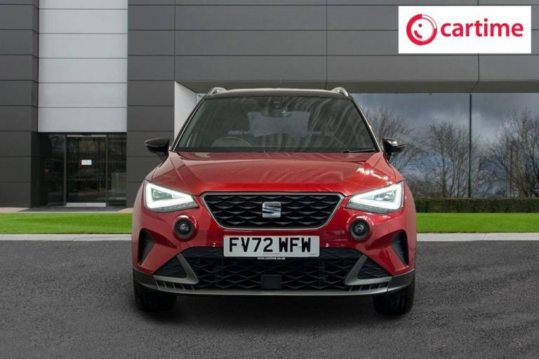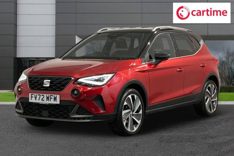 This 2022 SEAT Arona TSI FR Edition boasts a single owner and a clear vehicle history check, offering you peace of mind. As a Euro 6 compliant model, it features a 1.0 litre petrol engine and is presented in the sporty FR Edition trim. You can enjoy the convenience of KESSY keyless entry and go, alongside Bluetooth audio streaming with a handsfree system. The Arona also comes equipped with dual zone climate control for personalised comfort and full LED automatic headlights for enhanced visibility. Further enhancing your driving experience, the Full Link smartphone integration allows seamless connection for both Android Auto and Apple CarPlay. With an impressive fuel economy of 46 miles per gallon, this Arona demonstrates excellent efficiency compared to similar vehicles. Its low CO2 emissions also contribute to its economical running costs. The MOT remains valid until October 2026, ensuring it is roadworthy for the foreseeable future. Lifetime warranty available on this car, plus a £1,000 finance contribution when you part exchange. Voted UK Car Supermarket of the Year two years running, we offer 0% finance, part exchange, and lifetime warranties across our entire range. Every car is thoroughly inspected before sale and comes with a full history check, so you can buy with complete peace of mind. Buy with confidence on our best finance rates. Proud winners of the CarGurus Top-Rated Dealer 2022 and the MotoNovo Extra Mile Award. .18in Alloy Wheels - Machined - Black and Grey, 8.25in Touchscreen Display, Aircare Filter, Alarm with Back-Up Horn, Analogue Cockpit with Physical Dials, Anti-Lock Braking System - ABS, Black Interior Roof, Bluetooth Audio Streaming with Handsfree System, Chrome Roof Rails and Window Surround, Coloured Air Vent - Daring Red, Coming Home - Leaving Home Headlight Function, Contrast Roof, Cruise Control with Speed Limiter, Dark Tinted Rear Windows, Desire Red with Black Roof, Dimming Interior Rear View Mirror, Double Boot Floor, Driver and Front Passenger Airbags, Dual Zone Climate Control, EBA - Emergency Brake Assist and Front Assist, Electrically Adjustable and Heated Door Mirrors, Electronic Engine Immobiliser, Electronic Stability Control - ESC, Emergency Tyre Repair Kit, Front and Rear Electric Windows, Front and Rear Fog Lights with Cornering Function at Front, Front and Rear Seatbelt Reminder, Front Comfort Seats, Front Courtesy Light with Front Reading Lights, Full LED Automatic Headlight, Full Link Smartphone Integration, Height Adjustable Front Seats, Hill Hold Control, Illuminated Air Vent Surrounds, Interior Ambient Light, Interior Chrome Pack, Interior Light in Footwell - Centre Console and Door Panel, ISOFIX Points in Outer Rear Seats with Top Tether Anchorage Points, KESSY - Keyless Entry and Go, Lane Keeping System, LED Daytime Running Lights, LED Rear Taillights, Licence Plate Lights, Locking Wheel Bolts, Microsuede - Black with Lava Red Stitching, Perforated Leather Flat-Bottomed Steering Wheel with Red Stitching and FR Logo with Leather Gear Knob and Handbrake, Power Assisted Steering, Protective Side Moulding, Rear Parking Sensors, Rear Spoiler, Roof Coloured Door Mirrors, SEAT Connect - Safety - Service - Remote, SEAT Drive Profile, Side Airbag in Front with Curtain Airbag, Six Speakers, Split Folding Rear Seats - 60-40, Sunvisors with Mirror and Cardholder - Driver Side, Three-Point Seatbelts on All Rear Seats, Tiredness Recognition System, Titan Black Dashboard, Twin Exhaust Pipes, Two Front and Three Rear Height-Adjustable Headrests, Tyre Pressure Monitoring System, Wireless Phone Charger