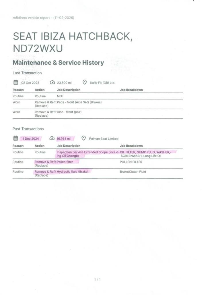 This 2022 SEAT Ibiza TSI FR Edition is a superb example, with a Full Seat Service History and having had only one owner since new. It boasts a responsive 1.0 litre petrol engine, meeting Euro 6 emissions standards, and will come with a Brand New, Independent, 12 month MOT once it is ordered, offering peace of mind for the road ahead. The FR Edition trim level enhances the driving experience with Full LED Automatic Headlights for excellent visibility, a Bluetooth Audio Streaming system with Handsfree capability for seamless connectivity, and Rear Parking Sensors to assist with manoeuvring. Further enhancing its appeal, this Ibiza features Dual Zone Climate Control to ensure comfort for all occupants and Full Link Smartphone Integration, compatible with both Android Auto and Apple CarPlay, keeping your digital life accessible on the go. The generous boot space is a practical highlight, making it ideal for shopping trips or weekend getaways. These features, combined with its single owner provenance and long MOT, demonstrate that this SEAT Ibiza offers a superior package compared to other vehicles in its class. Comes with 1 Seat Service carried out in December 24 at 16,764 miles and it has 2 Keys. See below for its full list of features. Book today to view and test drive. Open 7 days a week. All part exchanges welcome. Please ask for details of our finance and extended warranty options, subject to status, Ts and Cs apply. ** You can reserve a car - without any obligation to actually buy it - by clicking on the green "Reserve Today" button on our website page - all we ask is for a fully refundable £99 holding deposit ** ** We offer Nationwide Delivery on most cars, so you can easily buy a car without visiting us ** ** We have built our reputation on nearly 50 years of Trust & Customer Service ** Please see our much-valued, genuine 5* reviews on Google, Autotrader & Facebook ** ** We are open Monday to Friday 9am - 6pm, Saturday 9 - 5 and Sunday 10 - 4 ** Please call us first on 01773 743333 if you are travelling from out of our area **.Full Link Smartphone Integration, Bluetooth Audio Streaming with Handsfree System, Cruise Control + Speed Limiter, DAB Digital Radio, Dual Zone Climate Control, Rear Parking Sensors, 18in Performance Alloy Wheels , Wireless Phone Charger, 8.25in Touchscreen Display, SEAT Drive Profile and ECO Function, Interior Ambient Light, Sports Seats , Height Adjustable Front Seats, Electric Front and Rear Windows, Leather Multifunction Flat-Bottom Steering Wheel, Black Microsuede Upholstery, Split Folding Rear Seats - 60-40, FR Exterior Styling, Full LED Automatic Headlight, Dark Tinted Rear Windows, Electrically Adjustable Door Mirrors, Front and Rear Fog Lights , Magnetic Grey, Anti-Lock Braking System - ABS, ESC - Electronic Stability Control, Front Assist, Lane Assist, Hill Hold Control, Power Steering, Tyre Pressure Monitoring System, ISOFIX Points in Outer Rear Seats with Top Tether Anchorage Points, Remote Central Locking, Alarm, Front Driver and Passenger Side Airbags with Curtain Airbags