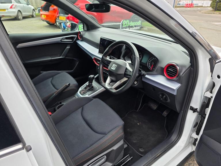 Discover this exceptional 2022 SEAT Arona TSI FR, boasting remarkably low mileage for its year at just 15,530 miles. This stylish compact SUV is equipped with a responsive 1.0 litre Euro 6 compliant petrol engine, offering an impressive fuel economy of 48 miles per gallon. The FR trim level enhances its sporty appeal, and you'll appreciate the convenience of Bluetooth audio streaming with a handsfree system, rear parking sensors for easier manoeuvring, and a wireless phone charger to keep you powered up on the go.Further enhancing your driving experience, this Arona features dual zone climate control to ensure comfort for all occupants and Full Link smartphone integration, compatible with Android Auto and Apple CarPlay, allowing seamless access to your favourite apps. Its low CO2 emissions are also a notable advantage, indicating a more environmentally conscious choice compared to many similar vehicles. This SEAT Arona TSI FR combines practicality with modern technology, making it a compelling option for your next car.