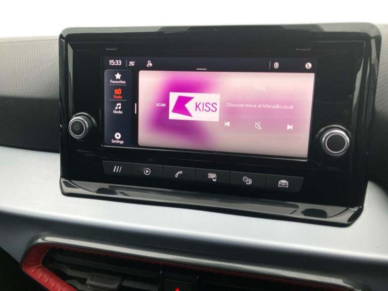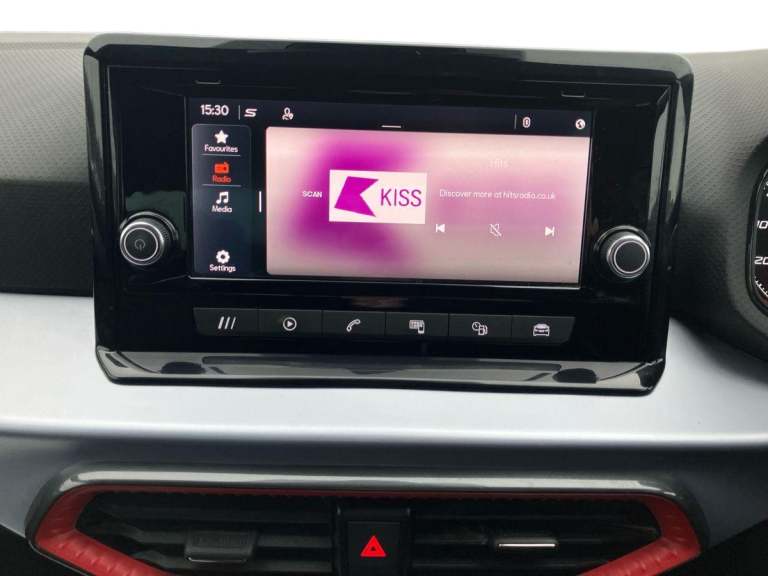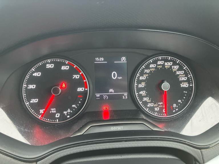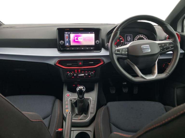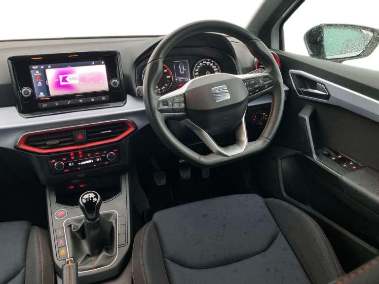 ..'Lights On' Reminder warning buzzer, 8.25'' touchscreen display with type C USB socket and DAB/AM/FM radio, Analogue cockpit with physical dials, Auto start and stop system, Bluetooth audio streaming with handsfree system, E-call, Full link smartphone integration with mirror link, wireless apple carplay, Google android auto + USB Type C cable for apple and android devices, Lane assist, Low fuel warning light, Outside temperature gauge, Power Steering, Rear parking sensor, Seat connect with safety, service and remote, SEAT drive profiles and ECO function, SEAT logo boot release, Speed limiter, Trip computer, Wireless phone charger, Sports suspension, Auxiliary input socket, Radio/MP3 player, SD card slot, Steering wheel mounted controls, Anti theft roof antenna, Black door mirrors, Body colour bumpers, Body colour door handles, Brilliant black window surrounds, Dark tinted rear windows, Dimming interior rear view mirror, Electric front windows, Electric headlight adjustment, Electric rear windows, Electrically adjustable and heated door mirrors, Front/rear fog lights, FULL LED automatic headlights with dynamic headlight range control, coming and leaving home, LED daytime running lights, LED tail lights, Rear roof spoiler with FR twin exhausts, Rear side wing doors, Rear wiper, Third brake light, 3 seat bench in 2nd row, 60/40 split folding rear seat, Ambient interior lighting, Chrome detailing and black headlining, Cloth upholstery, Dual zone climate control with combination filter, Front courtesy lights, Front cupholders x 2, Front reading lights, Gear shift indicator, Glovebox, Height adjustable front and rear headrests (five), Height adjustable front seats, Height/reach adjust steering wheel, Illuminated air vent surrounds, Illuminated boot, Instrument lighting with brightness control, Isofix, Leather multifunction flat bottomed sports steering wheel, Passenger sunvisor, Single front passenger seat, Sports seats, Sunvisors with mirror and driver side card holder, 3 point seatbelts on all 3 rear seats, ABS, Active front headrests, Child locks on rear doors, Electronic stability control, Energy recovery system, Front assist forward collision warning and autonomous emergency braking, Front driver and passenger side airbags with curtain airbag and front passenger airbag deactivation, Hill hold control, Multi-Collision braking, Seat belt reminder for front and rear seats, Tiredness recognition system, Tyre pressure monitoring system, Electronic engine