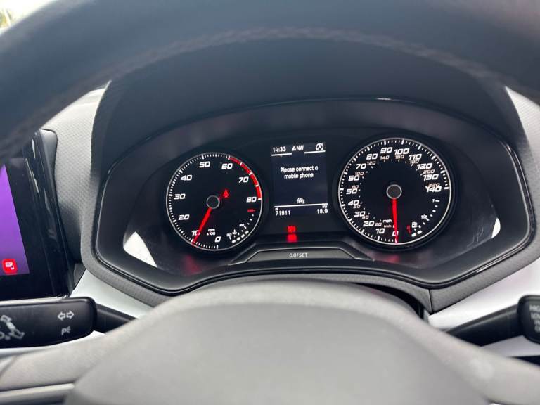 ..'Lights On' Reminder warning buzzer, 8'' Digital cockpit, 9.2'' touchscreen navigation system with type C USB socket, Voice control and DAB/AM/FM radio, Auto start and stop system, Bluetooth audio streaming with handsfree system, Cruise control, Digital clock, E-call, Full link smartphone integration with mirror link, wireless apple carplay, Google android auto + USB Type C cable for apple and android devices, Lane assist, Low fuel warning light, Outside temperature gauge, Power Steering, Seat connect with safety, service, remote and online, SEAT logo boot release, Speed limiter, Trip computer, Comfort suspension, Auxiliary input socket, Radio/MP3 player, SD card slot, Steering wheel mounted controls, Anti theft roof antenna, Body colour bumpers, Body colour door handles, Body colour door mirrors, Dimming interior rear view mirror, ECO LED automatic headlights and LED daytime running lights, Electric front windows, Electric headlight adjustment, Electrically adjustable door mirrors, Front/rear fog lights, Halogen tailights, Rain sensor, Rear side wing doors, Rear wiper, Third brake light, 3 seat bench in 2nd row, 60/40 split folding rear seat, Air conditioning with dust and pollen filter, Chrome interior detailing and grey headlining, Cloth upholstery, Comfort seats, Front courtesy lights, Front cupholders x 2, Front reading lights, Gear shift indicator, Glovebox, Height adjustable front and rear headrests (five), Height adjustable front seats, Height/reach adjust steering wheel, Illuminated boot, Instrument lighting with brightness control, Isofix, Leather multifunction flat bottomed sports steering wheel, Passenger sunvisor, Single front passenger seat, Sunvisors with mirror and driver side card holder, 3 point seatbelts on all 3 rear seats, ABS, Active front headrests, Child locks on rear doors, Electronic stability control, Energy recovery system, Front assist forward collision warning and autonomous emergency braking, Front driver and passenger side airbags with curtain airbag and front passenger airbag deactivation, Hill hold control, Multi-Collision braking, Seat belt reminder for front and rear seats, Tiredness recognition system, Tyre pressure monitoring system, Electronic engine immobiliser, Locking wheel bolts, Remote central locking + deadlocks, 16'' Design machined alloy wheels in Nuclear grey