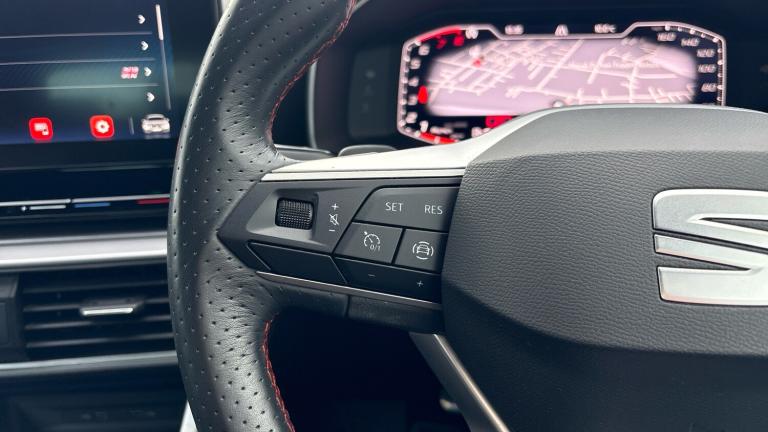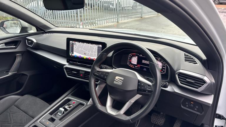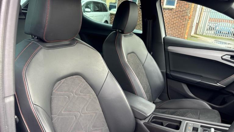Here we have a SEAT Leon Hatchback 2.0 TSI EVO FR Sport 5dr DSG, a sharp and sporty hatchback that perfectly balances performance, style and everyday usability.Powered by the lively 2.0 TSI EVO petrol engine paired with SEAT’s smooth DSG automatic gearbox, this Leon delivers strong performance with effortless gear changes, making it just as enjoyable on a twisty road as it is comfortable on longer motorway journeys. The drive is refined yet engaging, offering the kind of responsiveness you’d expect from the FR Sport model.The FR Sport specification enhances the Leon’s dynamic character with a sporty, well-finished interior and supportive seats that keep you comfortable whether you’re commuting or enjoying a spirited drive. The digital driver display and central touchscreen infotainment system provide clear access to navigation, media and vehicle settings, while Apple CarPlay and Android Auto ensure seamless smartphone connectivity.On the outside, the Leon’s sleek hatchback design is complemented by striking alloy wheels and LED lighting, giving it a confident and modern road presence. Practicality hasn’t been forgotten either, with five doors offering easy access for passengers and a generous boot space suitable for daily use or weekend trips.ULEZ compliant and economical for its performance level, this SEAT Leon FR Sport is an excellent choice for drivers looking for a stylish, well-equipped hatchback with genuine pace and everyday practicality.Early viewing is highly recommended – please contact us today to arrange a test drive..Air Conditioning, Cruise Control, Satellite Navigation, Alloy Wheels, Heated Seats, DAB Radio, Bluetooth, Parking Sensors, Stop Start, USB, Electric Seats, Memory Seats, Diamond Cut Alloy Wheels, Adaptive cruise, Keyless Entry-Push Button Start& Auto Lights, Rear wash/wipe, Electric front/rear windows, Dark tinted rear windows, Rain sensing wipers, ABS, Electronic parking brake, Hill hold control, Brake control system - ESC and brake booster, Rear disc brakes, Sports suspension, Full link smartphone integration with Mirror Link, wireless Apple CarPlay and wired Google Android Auto, E-call, Park assist (inc front/rear parking sensors), Power assisted speed sensitive electro-mechanical steering, SEAT drive profile with 4 modes (Eco/Normal/Sport/Individual), throttle response and gearshift mode, Lane keeping system, Front assist with forward collision warning braking reaction to vehicles, pedestrians and cyclists, Lane assist