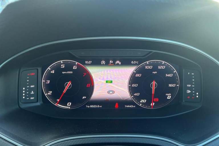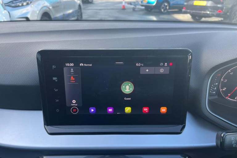 'Lights On' Reminder warning buzzer, 10 Digital cockpit, Digital clock, E-call, Electric speed sensitive power steering, Full Link Smartphone Integration with Mirror Link, Apple Car Play, Google Android Auto with USB Type C cable for Apple and Android compatibility, Low fuel warning light, Outside temperature display, Rear parking sensor, RPM counter, Seat connect with safety, service, remote and online, SEAT Drive profile - Four different models normal-sport-eco-individual, steering response, throttle response and gear shifts mode, Trip computer, Wireless phone charger, Anti theft roof antenna, Auto dimming interior rear view mirror, Automatic activation of hazard warning lights, Body coloured bumpers, Body coloured door handle inserts, Chrome roof rails and window surrounds, Dark tinted rear windows, Electric front/rear windows, Electrically adjustable, heated and folding door mirrors, Front fog lights with cornering function and rear fog light, FULL LED automatic headlights with dynamic headlight range control, coming and leaving home, LED daytime running lights, LED rear tail lights and licence plate lights, Protective side mouldings, Rain sensing wipers, Rear side wing doors, Rear spoiler, Rear window wash/wipe, Roof colour door mirrors, Third brake light, Twin exhaust pipe styling hidden exhaust pipe, Visible VIN plate, Windshield wiper with intermittent control and potentiometer, 2 cupholders, 3 seat bench in 2nd row, 60/40 split folding rear seat, Aircare filter,