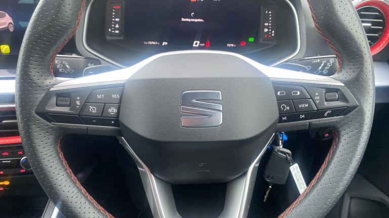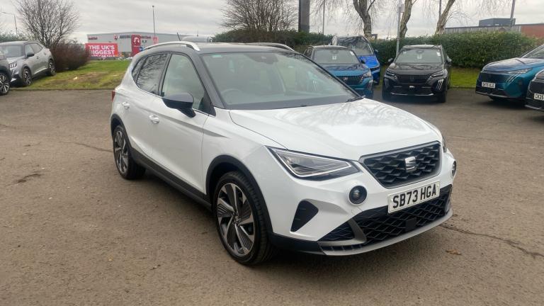 The 2023 SEAT Arona 1.0 TSI 110 FR Sport 5-door DSG is a dynamic and stylish compact SUV that delivers an engaging drive, modern design and practical everyday usability. Powered by a responsive 1.0-litre TSI petrol engine with 110 PS and a smooth DSG automatic gearbox, it offers confident performance with refined efficiency — ideal for urban driving and longer journeys alike.Finished in the sporty FR Sport trim, this Arona stands out with striking exterior details including uniquely styled alloy wheels, sport-inspired bumpers and FR badging, giving it a more athletic presence on the road. The cabin continues the theme with high-quality materials, supportive seats and thoughtful touches that enhance comfort and convenience.Inside, the intuitive infotainment system features a touchscreen with smartphone integration via Apple CarPlay and Android Auto, keeping navigation and media easily accessible. Dual-zone climate control, keyless entry and adjustable driving modes add to the everyday comfort.Practicality is a strength, with ample headroom and a versatile boot that easily accommodates luggage or shopping. Safety systems such as autonomous emergency braking, lane assist and adaptive cruise control help provide confidence behind the wheel.Overall, the SEAT Arona FR Sport blends style, technology and practicality in a compact SUV that suits a wide range of lifestyles..Climate Control, Cruise Control, Satellite Navigation, DAB Radio, Bluetooth, Parking Sensors, Low Mileage, Full Service History, Diamond Cut Alloy Wheels, Apple-Android Play& Rear Camera, Double boot floor, Rear window wash/wipe, Electric front/rear windows, Dark tinted rear windows, Rain sensing wipers, Windshield wiper with intermittent control and potentiometer, ABS, Traction control, Electronic stability control, Hill hold control, Emergency Brake Assist (EBA) and front assist, E-call, Rear parking sensor, Electric speed sensitive power steering, Multi-Collision Braking, SEAT Drive profile - Four different models normal-sport-eco-individual, steering response, throttle response and gear shifts mode, RPM counter, Full Link Smartphone Integration with Mirror Link, Apple Car Play, Google Android Auto with USB Type C cable for Apple and Android compatibility, Trip computer, Digital clock, Low fuel warning light, 'Lights On' Reminder warning buzzer