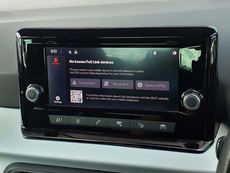 ..'Lights On' Reminder warning buzzer, Analogue cockpit with physical dials, Cruise control and speed limiter, Digital clock, E-call, Electric speed sensitive power steering, Full Link Smartphone Integration with Mirror Link, Apple Car Play, Google Android Auto with USB Type C cable for Apple and Android compatibility, Lane keeping system, Low fuel warning light, Outside temperature display, Rear parking sensor, RPM counter, Seat connect with safety, service and remote, Trip computer, Wireless phone charger, Bluetooth interface for hands free and audio streaming, DAB digital radio and AM/FM radio, Media system with 8.25'' colour touchscreen with USB port (type c), Steering wheel mounted audio controls, Anti theft roof antenna, Automatic activation of hazard warning lights, Black roof rails and window surrounds, Body coloured bumpers, Body coloured door handle inserts, Body coloured door mirrors, Dark tinted rear windows, Dimming rear view mirror, ECO LED automatic headlights and LED daytime running lights, Electric front/rear windows, Electrically adjustable and heated door mirrors, Hidden exhaust pipe, Licence plate lights, Protective side mouldings, Rear fog lights, Rear side wing doors, Rear spoiler, Rear window wash/wipe, Third brake light, Visible VIN plate, Windshield wiper with intermittent control and potentiometer, 2 cupholders, 3 seat bench in 2nd row, 60/40 split folding rear seat, Cloth upholstery, Double boot floor, Driver sunvisor with covered mirror + card holder, Dual zone climate control, Dust/pollen filter, Front courtesy light with front reading lights, Gear shift indicator, Grey interior roof, Height adjustable front seats, Height/reach adjustable steering column, Illuminated boot, Instrument lighting with brightness control, ISOFIX points in outer rear seats with top tether anchorage points, Leather steering wheel/gear knob/handbrake, Passenger sunvisor with vanity mirror, Single front passenger seat, Two front and three rear height adjustable headrests, Interior chrome pack - Arona, 3 point seatbelts on all rear seats, ABS, Active front headrests, Child locks on rear doors, Driver and front passenger airbags with front passenger airbag de activation, front side and curtain airbags, Electronic stability control, Emergency Brake Assist (EBA) and front assist, Front and rear seatbelt reminder, Hill hold control, Multi-Collision braking, Tiredness recognition system, Traction control, Tyre pressure monitoring system, Electronic engine