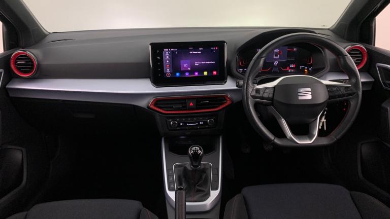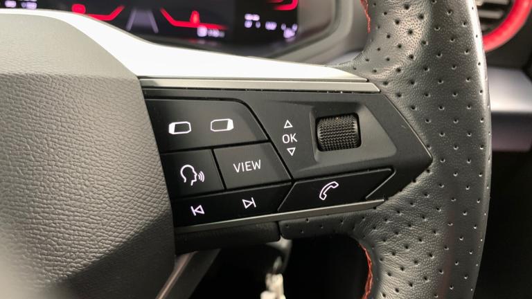 9.2in Touchscreen DisplayBluetooth Audio Streaming with Handsfree SystemFull Link Smartphone IntegrationSEAT Connect - Safety - Service - Remote - OnlineSix SpeakersWireless Phone ChargerCruise Control with Speed LimiterRear Parking SensorsSEAT Drive ProfileTiredness Recognition SystemTyre Pressure Monitoring System17in Alloy Wheels - DynamicChrome Roof Rails and Window SurroundContrast RoofDark Tinted Rear WindowsElectrically Adjustable Folding and Heated Door MirrorsEmergency Tyre Repair KitFront and Rear Electric WindowsLocking Wheel BoltsProtective Side MouldingRear SpoilerRoof Coloured Door MirrorsTwin Exhaust PipesFront and Rear Fog Lights with Cornering Function at FrontFull LED Automatic HeadlightLED Rear TaillightsAircare FilterAuto Dimming Rear View MirrorBlack Interior RoofColoured Air Vent - Daring RedDigital Cockpit - 8inDouble Boot FloorDual Zone Climate ControlFront Courtesy Light with Front Reading LightsHeight Adjustable Front SeatsIlluminated Air Vent SurroundsInterior Ambient LightInterior Chrome PackInterior Light in Footwell - Centre Console and Door PanelPerforated Leather Flat-Bottomed Steering Wheel with Red Stitching and FR Logo with Leather Gear Knob and HandbrakeRain Sensing WipersRear Fog LightSplit Folding Rear Seats - 60-40Sunvisors with Mirror and Cardholder - Driver SideTitan Black DashboardTwo Front and Three Rear Height-Adjustable HeadrestsPower Assisted SteeringAlarm with Back-Up HornAnti-Lock Braking System - ABSDriver and Front Passenger AirbagsEBA - Emergency Brake Assist and Front AssistElectronic Engine ImmobiliserElectronic Stability Control - ESCFront and Rear Seatbelt ReminderHill Hold ControlISOFIX Points in Outer Rear Seats with Top Tether Anchorage PointsLane Keeping SystemLicence Plate LightsSide Airbag in Front with Curtain AirbagThree-Point Seatbelts on All Rear SeatsCloth - Navy and Black