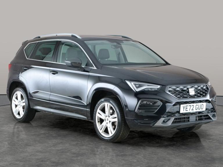 Experience the dynamic Seat Ateca FR with seamless automatic driving and stylish half leather seats. Enjoy effortless access with keyless entry, and let park assist and front and rear parking sensors take the stress out of manoeuvring. Stay connected with Apple CarPlay, Bluetooth audio streaming, and built-in sat nav, while LED headlights light up your evening drives. Dual zone digital climate control and selectable driving modes add further comfort and personalisation. Test out the thrilling paddle shift on your next adventure. 1 service recorded, last serviced on 20/01/2026 at 19,555 miles. MOT to 24/01/2027. Visit our website for service history, online valuation, full vehicle specification plus multiple images. This vehicle is VAT qualifying. Any feature/option specified here is from 3rd party data. We cannot guarantee the accuracy of any specification supplied by a 3rd party. We recommend that you physically check the specification of the vehicle on site prior to purchase. This information does not form part of the buying contract. Terms & Conditions apply. We have over 2,000 cars available from our 10 national branches, check our website to see all our stock. Our Trustpilot rating is 4.4/5 with over 9,000 reviews.