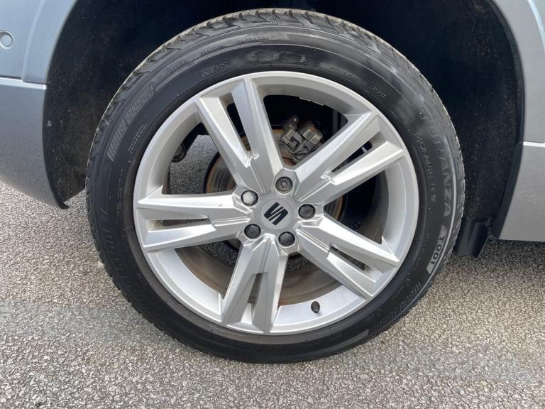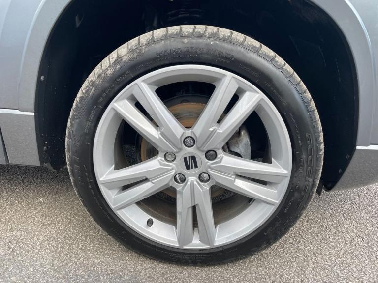 The SEAT Ateca 1.5 TSI EVO FR Estate offers a stylish and sophisticated driving experience. With just 32,215 miles on the clock, this 2023 model in sleek grey boasts a range of impressive features. From the 18"" Brilliant silver alloy wheels to the black roof rails and LED rear tail lights with dynamic indicators, every detail has been carefully designed. Inside, the cabin is equipped with Dinamica upholstery, a convenient 8"" digital cockpit, and a navigation system pack with DAB radio. Safety features include ABS, Traction control system, and front and side airbags. This Ateca model also offers practical elements such as an electric parking brake, dual zone climate control, and a wireless phone charger. Whether you're cruising through the city or tackling long journeys, the SEAT Ateca combines style, comfort, and technology seamlessly.