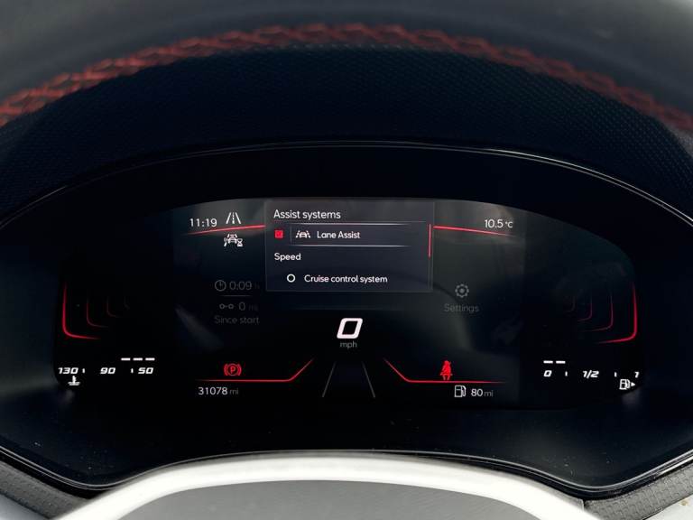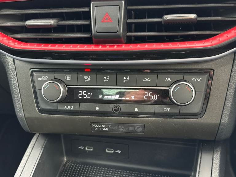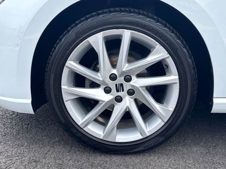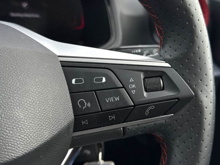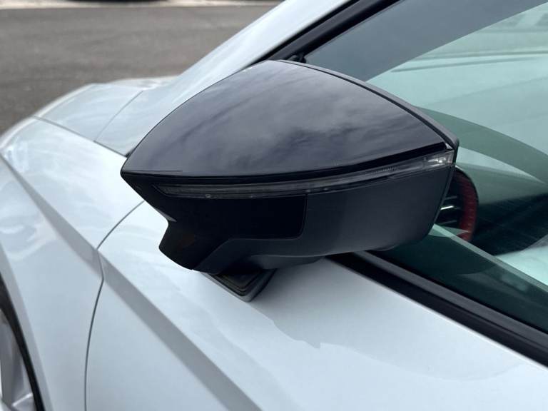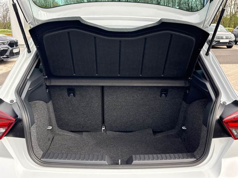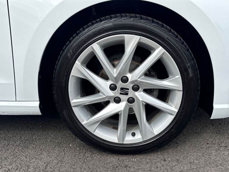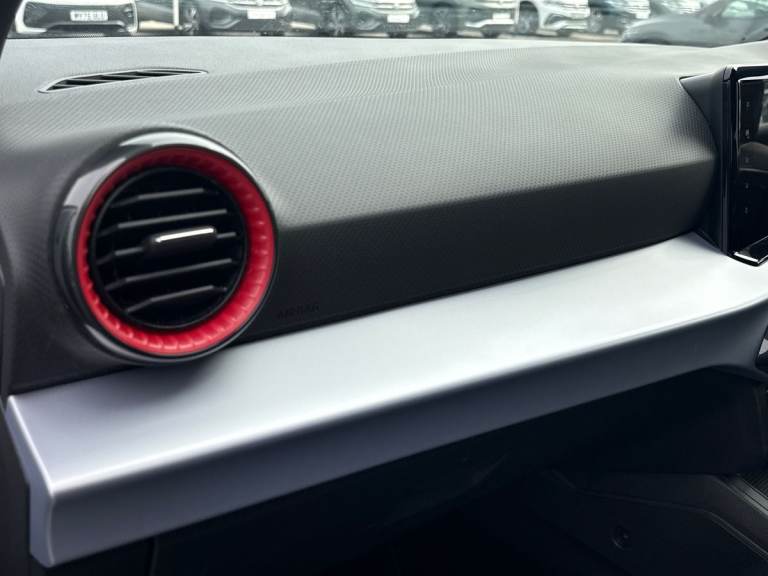 The SEAT Ibiza 1.0 TSI 95 FR in striking Metallic Nevada White delivers a perfect balance of sporty design, advanced technology, and everyday efficiency. With its dynamic FR styling, sports suspension, and 17-inch Brilliant Silver alloy wheels, it offers a confident and agile presence on the road, ideal for both city driving and longer journeys. Under the bonnet, the responsive 1.0 TSI 95 engine provides smooth performance with impressive efficiency, while SEAT Drive Profiles and ECO mode allow you to tailor your driving experience to suit your style. The exterior is enhanced by full LED automatic headlights with dynamic range control, as well as coming and leaving home functionality, ensuring excellent visibility and a premium feel. Electrically adjustable, heated, and folding door mirrors add convenience, while subtle design touches reinforce its sporty character. Inside, the Ibiza FR features a modern, driver-focused cabin with an 8-inch digital cockpit and a large 9.2-inch touchscreen navigation system. Connectivity is seamless, with Bluetooth audio streaming, voice control, DAB radio, and full smartphone integration including wireless Apple CarPlay and Android Auto, keeping you connected on every journey. Comfort and style go hand in hand, with dual-zone climate control, a flat-bottomed leather multifunction sports steering wheel, supportive sports seats, and a sleek interior finished with chrome detailing and a black headlining. Safety is a key focus, with a suite...
