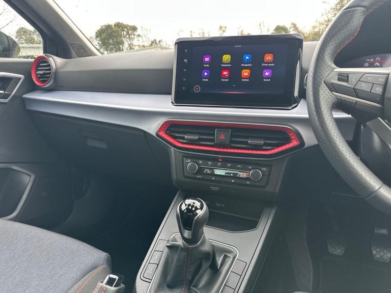 The SEAT Ibiza 1.0 TSI 110 FR 5-door Hatchback is a sleek and sophisticated ride, with a Magnetic Tech Grey exterior that turns heads wherever it goes. Boasting a powerful 1.0 TSI engine under the hood, this 2023 model has only covered 9250 miles. The 17"" alloy wheels in Brilliant Silver perfectly complement the sporty design, while the full LED automatic headlights provide enhanced visibility.Inside, the cabin is adorned with ambient interior lighting and cloth upholstery, creating a comfortable and stylish environment. The 8"" digital cockpit and 9.2"" touchscreen navigation system offer advanced technology at your fingertips, including Bluetooth audio streaming and smartphone integration.Safety features abound in this model, including Front Assist Forward Collision Warning, Lane Assist, and a Tiredness Recognition System. The SEAT Drive Profiles and ECO function allow for a customised driving experience, while the Sports Suspension and Sports Seats cater to those looking for a more dynamic ride.With practical features such as dual-zone climate control, electric adjustable mirrors, and ample storage options, the SEAT Ibiza 1.0 TSI 110 FR is a well-rounded hatchback that combines style, performance, and functionality seamlessly.