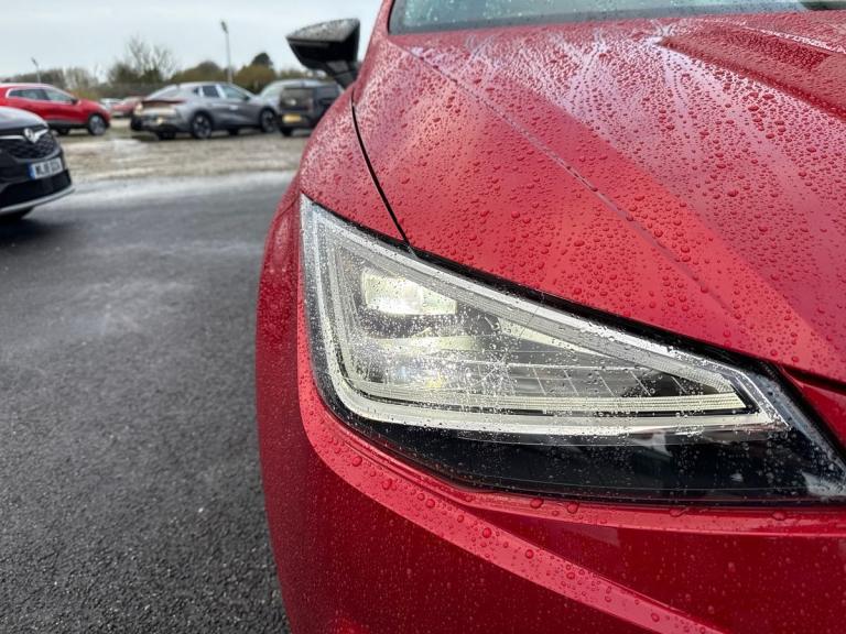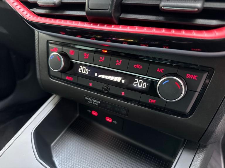 This SEAT Ibiza 1.0 TSI 110 FR Sport 5Dr Hatchback in Desire Red comes with a host of impressive features, including 18"" Performance machined alloy wheels, ambient interior lighting, and dark tinted rear windows. The interior boasts comfortable leather multifunction flat bottomed sports steering wheel, front driver and passenger side airbags, and dual-zone climate control. Safety features include Lane Assist, Front Assist Forward Collision Warning, and Autonomous Emergency Braking, ensuring a safe driving experience. With a sleek design, FULL LED automatic headlights, and SPORT suspension, this SEAT Ibiza combines style with performance. Perfect for those looking for a compact hatchback that doesn't compromise on comfort or technology.
