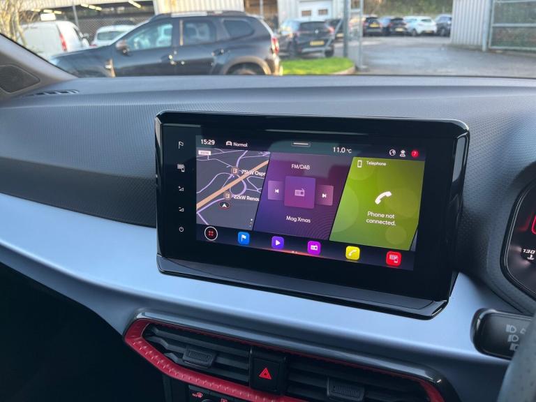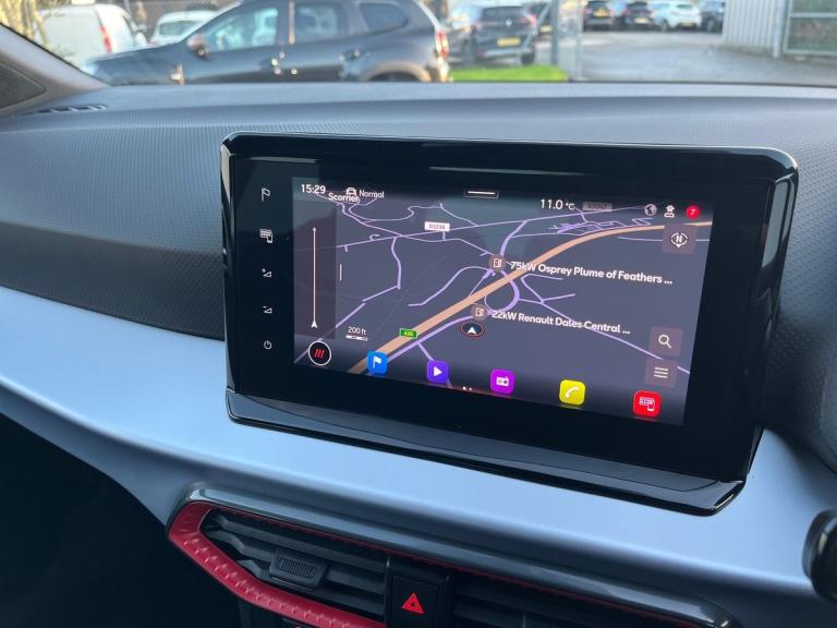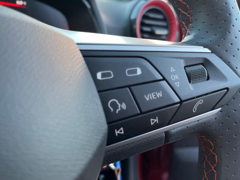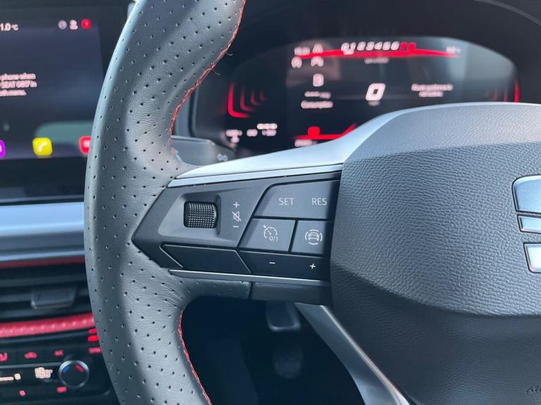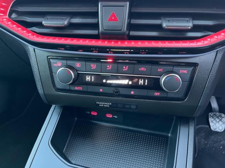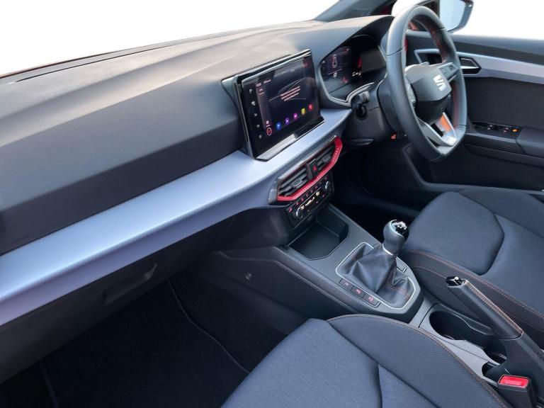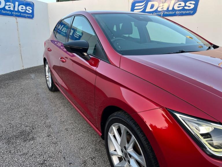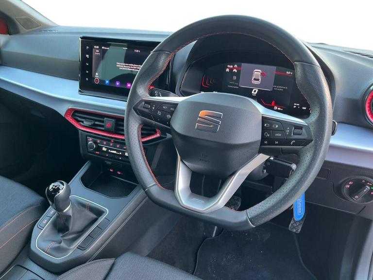 This SEAT Ibiza 1.0 TSI 95 FR 5-door hatchback is a sporty and stylish choice for those looking for a versatile and efficient car. Finished in Desire Red with sleek 17"" alloy wheels in Brilliant Silver, this 2023 model with just 25,045 miles on the clock is in excellent condition. Inside, you'll find a modern and tech-savvy cabin featuring an 8"" digital cockpit and a 9.2"" touchscreen navigation system with DAB/AM/FM radio. The dual-zone climate control ensures a comfortable ride, while the ambient interior lighting adds a touch of sophistication.Safety is a top priority with features like lane assist, multi-collision braking, and traffic sign recognition included in the Safety and Driving Pack. The FR trim level also boasts sports suspension, sports seats, and a leather multifunction flat-bottomed sports steering wheel for an engaging driving experience.Packed with technology and convenience features like full LED automatic headlights, rear parking sensors, and smartphone integration, this SEAT Ibiza offers a dynamic and enjoyable driving experience in a compact and stylish package.