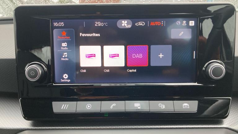 .Rear wash/wipe, Electric front/rear windows, Rain sensor, ABS, Hill hold control, Brake control system - ESC and brake booster, Electronic parking brake, Rear disc brakes, Standard suspension, Full link smartphone integration with Mirror Link, wireless Apple CarPlay and wired Google Android Auto, E-call, Rear parking sensors, Power assisted speed sensitive electro-mechanical steering, Cruise control with speed limiter, Front assist with forward collision warning braking reaction to vehicles, pedestrians and cyclists, Lane assist, Start/stop system with regenerative braking, Service interval indicator, RPM, trip computer, outside temp gauge, instrument light brightness, low fuel warning light, lights on reminder, gearshift indicator, Two USB Type C ports in front, Electrically adjustable and heated door mirrors, Body coloured exterior mirrors with integrated LED indicators, Manual dimming rear view mirror, Chrome interior detailing, Auxiliary input socket
