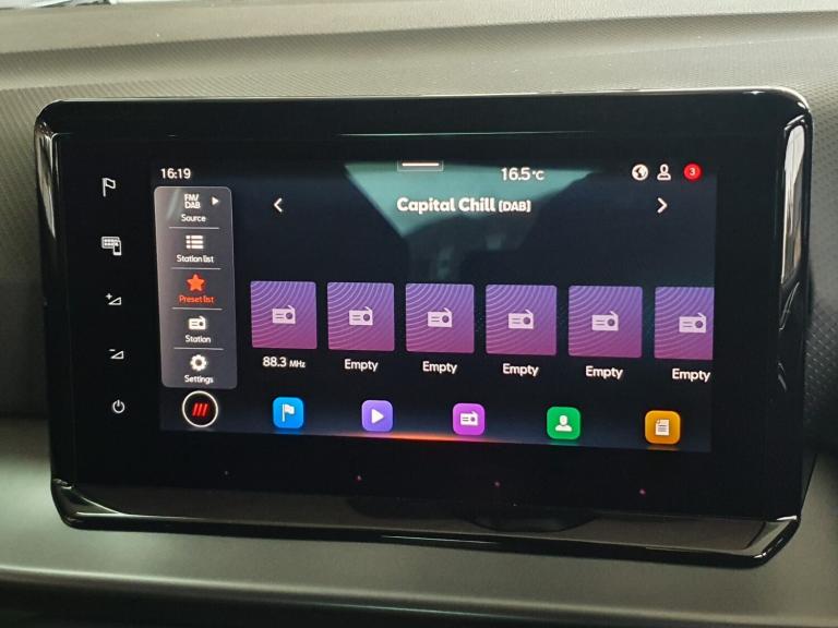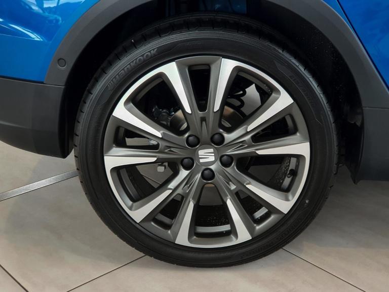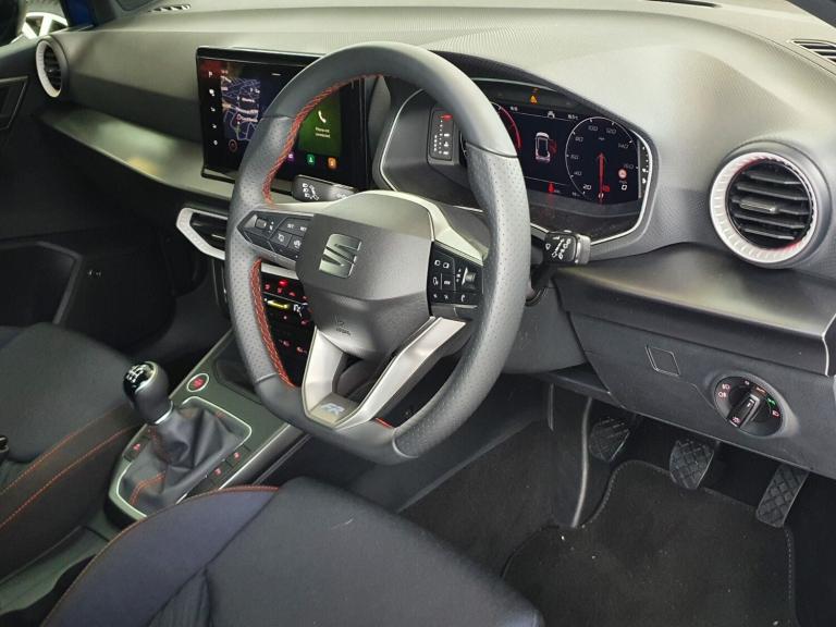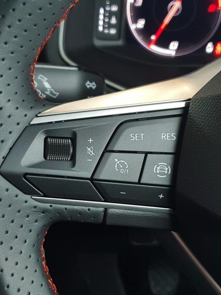 ..'Lights On' Reminder warning buzzer, 10'' Digital cockpit, Digital clock, E-call, Electric speed sensitive power steering, Full Link Smartphone Integration with Mirror Link, Apple Car Play, Google Android Auto with USB Type C cable for Apple and Android compatibility, Lane keeping system, Low fuel warning light, Outside temperature display, Park assist system, Rear view camera, RPM counter, SEAT Drive profile - Four different models normal-sport-eco-individual, steering response, throttle response, Trip computer, Wireless phone charger, 9.2'' colour touchscreen with navigation system, voice control and USB port (type c), Bluetooth interface for hands free and audio streaming, DAB digital radio and AM/FM radio, Steering wheel mounted audio controls, Anti theft roof antenna, Auto dimming interior rear view mirror, Automatic activation of hazard warning lights, Body coloured bumpers, Body coloured door handle inserts, Chrome roof rails and window surrounds, Dark tinted rear windows, Electric front/rear windows, Electrically adjustable, heated and folding door mirrors, Front fog lights with cornering function and rear fog light, FULL LED automatic headlights with dynamic headlight range control, coming and leaving home, LED daytime running lights, LED rear tail lights and licence plate lights, Protective side mouldings, Rain sensing wipers, Rear side wing doors, Rear spoiler, Rear window wash/wipe, Roof colour door mirrors, Third brake light, Twin exhaust pipe styling hidden exhaust pipe, Visible VIN plate, 2 cupholders, 3 seat bench in 2nd row, 60/40 split folding rear seat, Aircare filter, Black interior roof, Double boot floor, Driver sunvisor with covered mirror + card holder, Dual zone climate control, Front courtesy light with front reading lights, Front sport seats, Gear shift indicator, Grey interior air vents, Height adjustable front seats, Height/reach adjustable steering column, Illuminated boot, Instrument lighting with brightness control, Interior ambient lighting, Interior light in footwell, central console and door panel, ISOFIX points in outer rear seats with top tether anchorage points, Microsuede cloth upholstery + sports bucket seats, Passenger sunvisor with vanity mirror, Perforated flat bottomed leather steering wheel/gear knob/handbrake with red stitching and FR logo, Potentiometer, Single front passenger seat, Two front and three rear height adjustable headrests, Interior chrome pack - Arona, Safe and driving pack (S) - Arona, 3 point