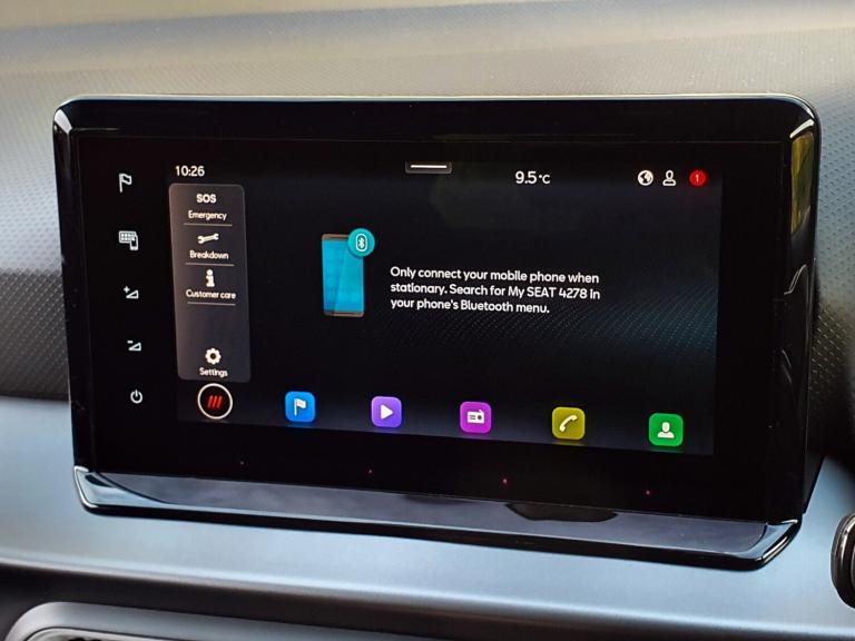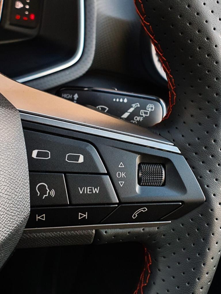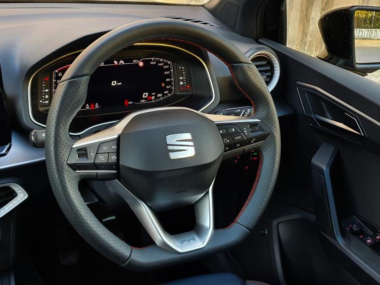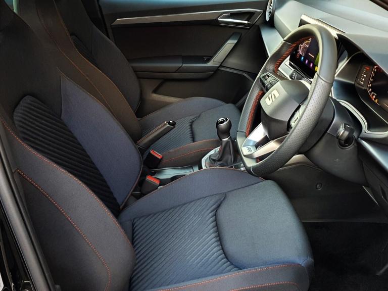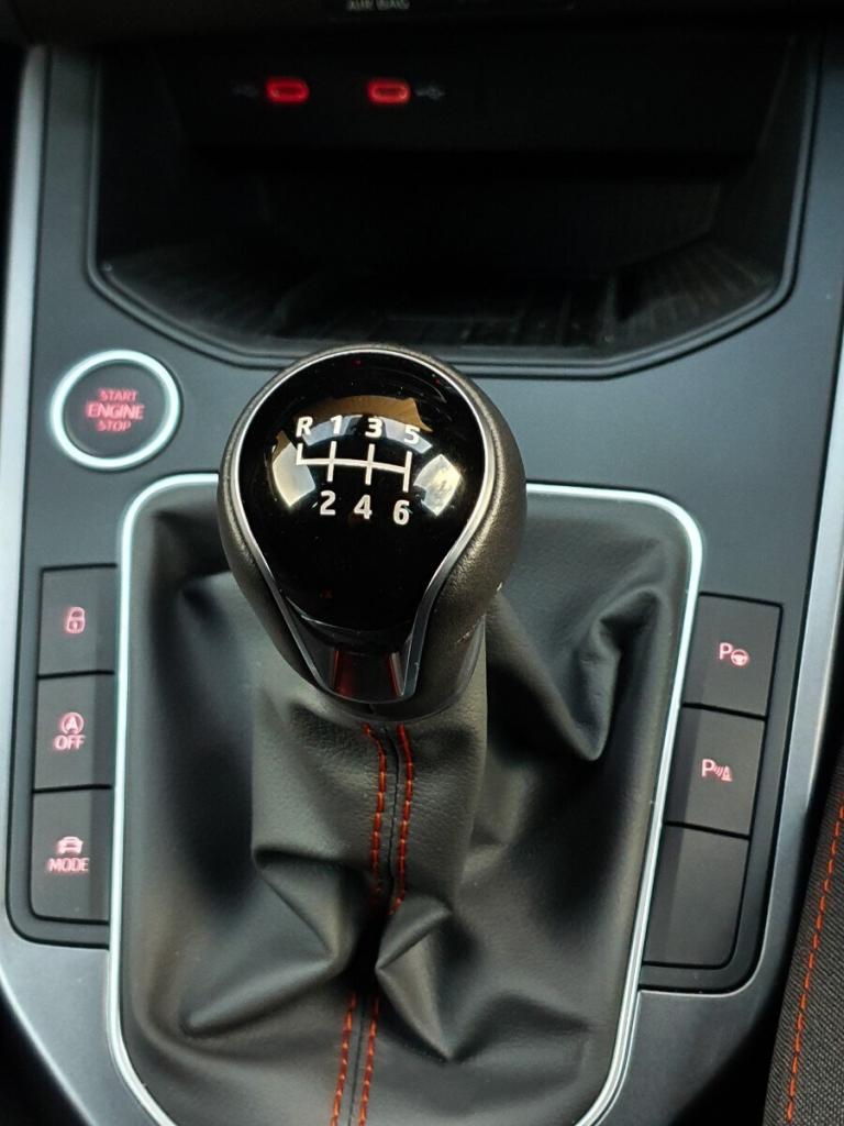 ..'Lights On' Reminder warning buzzer, 10'' Digital cockpit, Digital clock, E-call, Electric speed sensitive power steering, Full Link Smartphone Integration with Mirror Link, Apple Car Play, Google Android Auto with USB Type C cable for Apple and Android compatibility, Lane keeping system, Low fuel warning light, Outside temperature display, Park assist system, Rear view camera, RPM counter, SEAT Drive profile - Four different models normal-sport-eco-individual, steering response, throttle response, Trip computer, Wireless phone charger, 9.2'' colour touchscreen with navigation system, voice control and USB port (type c), Bluetooth interface for hands free and audio streaming, DAB digital radio and AM/FM radio, Steering wheel mounted audio controls, Anti theft roof antenna, Auto dimming interior rear view mirror, Automatic activation of hazard warning lights, Body coloured bumpers, Body coloured door handle inserts, Chrome roof rails and window surrounds, Dark tinted rear windows, Electric front/rear windows, Electrically adjustable, heated and folding door mirrors, Front fog lights with cornering function and rear fog light, FULL LED automatic headlights with dynamic headlight range control, coming and leaving home, LED daytime running lights, LED rear tail lights and licence plate lights, Protective side mouldings, Rain sensing wipers, Rear side wing doors, Rear spoiler, Rear window wash/wipe, Roof colour door mirrors, Third brake light, Twin exhaust pipe styling hidden exhaust pipe, Visible VIN plate, 2 cupholders, 3 seat bench in 2nd row, 60/40 split folding rear seat, Aircare filter, Black interior roof, Double boot floor, Driver sunvisor with covered mirror + card holder, Dual zone climate control, Front courtesy light with front reading lights, Front sport seats, Gear shift indicator, Grey interior air vents, Height adjustable front seats, Height/reach adjustable steering column, Illuminated boot, Instrument lighting with brightness control, Interior ambient lighting, Interior light in footwell, central console and door panel, ISOFIX points in outer rear seats with top tether anchorage points, Microsuede cloth upholstery + sports bucket seats, Passenger sunvisor with vanity mirror, Perforated flat bottomed leather steering wheel/gear knob/handbrake with red stitching and FR logo, Potentiometer, Single front passenger seat, Two front and three rear height adjustable headrests, Interior chrome pack - Arona, Safe and driving pack (S) - Arona, 3 point