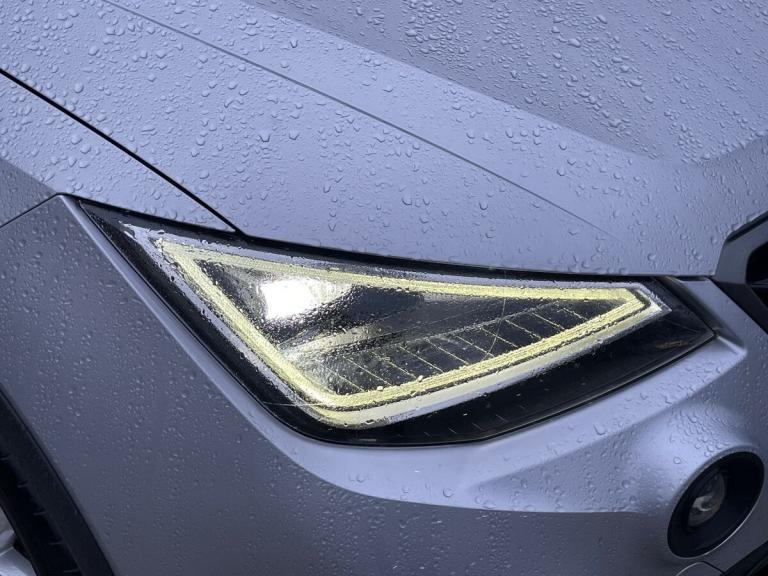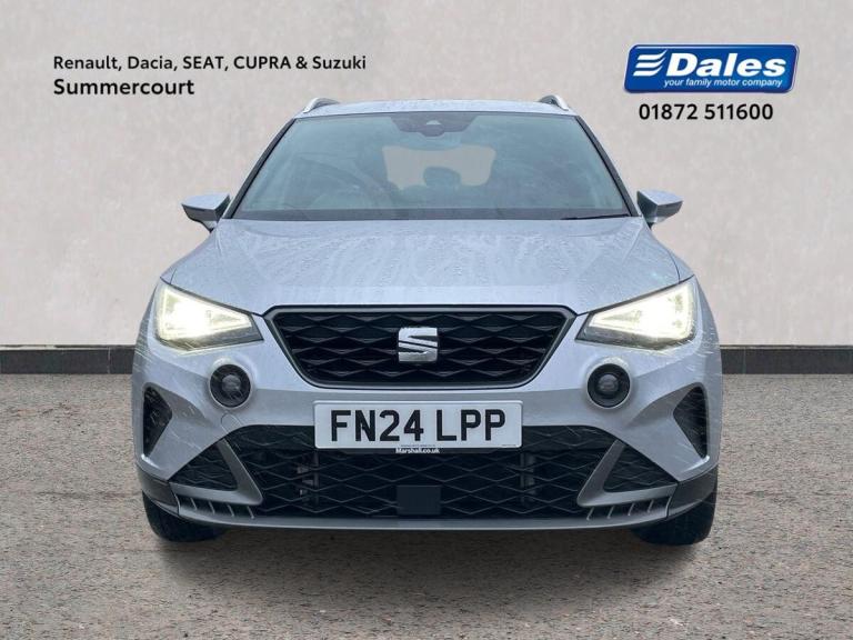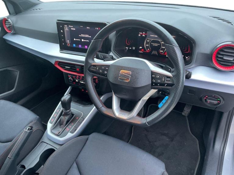 The SEAT Arona 1.0 TSI 110 FR DSG Hatchback is a stylish and efficient vehicle, perfect for navigating city streets and beyond. This silver beauty boasts sporty 17"" Dynamic alloy wheels and sleek black interior roof. Powered by a responsive 1.0 TSI engine, it offers a comfortable ride with dual-zone climate control and fabric sport seats. Safety features include ABS, airbags, Lane keeping system, and Tiredness recognition system. The tech-savvy cockpit includes an 8"" digital display and a 9.2"" colour touchscreen with navigation system and smartphone integration. With its practicality enhanced by features like a double boot floor, rear parking sensor, and interior ambient lighting, this SEAT Arona is a versatile and modern choice for drivers seeking a dynamic driving experience.