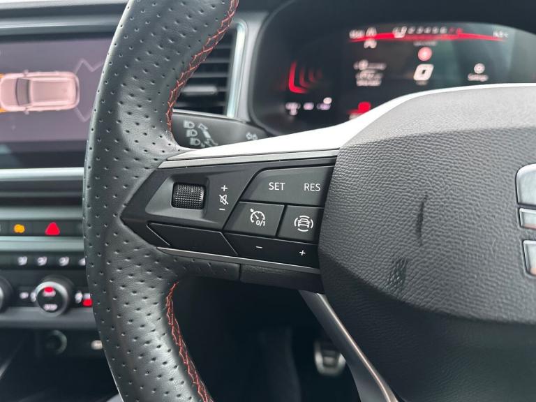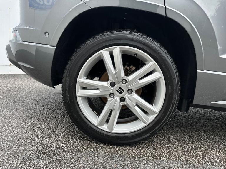 The SEAT Ateca 1.5 TSI EVO FR Estate in a sleek grey colour is a stylish and feature-packed vehicle with just 22,002 miles on the clock. This 5-door estate car combines practicality with modern design, featuring 18"" Brilliant silver alloy wheels, black roof rails, and black side window trim. Inside, the dinamica upholstery with front comfort seats provides a comfortable driving experience.Safety is a top priority with this model, offering ABS, traction control system, electronic stability control, and multiple airbags including driver, front passenger, front side, curtain, and driver's knee airbags. For convenience, features like cruise control, dual-zone climate control, keyless entry, and a navigation system with DAB radio are included.The SEAT Ateca is not just about safety and comfort, as it also boasts tech-savvy features such as a 8"" digital cockpit, wireless smartphone integration, and a wireless phone charger. With its dynamic headlight range control, full LED headlamps, LED rear tail lights, and self-parking functionality, this vehicle offers a blend of practicality and modern technology for a satisfying driving experience.