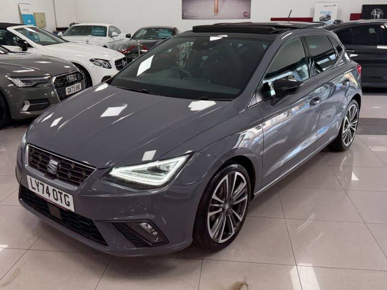 This SEAT Ibiza 1.0 TSI Anniversary Limited Edition Hatchback (5dr Petrol DSG, Euro 6, s/s, 115 ps) is a stylish and economical car that combines comfort with modern technology. The smooth DSG automatic gearbox and efficient turbocharged engine deliver an excellent balance of performance and fuel economy. The Anniversary Limited Edition comes well equipped with premium features, making it an ideal choice for both city driving and longer journeys. Well maintained and in great condition, this Ibiza is a reliable, practical, and fun-to-drive hatchback ready for its next owner. View our selection of vehicles in our indoor showroom, where you can see your potential car undercover and in a well-lit area. All of our cars come with a 3-month parts and labor warranty, which is extendable up to 3 years. Reserve any vehicle today with a fully refundable £100 deposit. If you choose not to purchase the vehicle, your deposit will be returned in full upon inspection. We also offer competitive finance packages, including the option for zero deposit. Dont just take our word for it, check out our excellent online reviews..18in Alloy Wheels - Cosmo Grey, 9.2in Navigation System, Alarm and Electronic Engine Immobiliser, Anniversary Edition Pack, Anti-Theft Wheel Bolts, Auto Dimming Rear View Mirror, BeatsAudio Sound System, Bluetooth Audio Streaming with Handsfree System, Chrome Interior Detailing - Black Headlining, Cruise Control and Speed Limiter, Dark Tinted Rear Windows, Digital Cockpit - 10in, Driver Sunvisor with Mirror and Card Holder, Dual Zone Climate Control with Combination Filter, Electric Front Windows, Electric Rear Windows, Electrically Adjustable Folding and Heated Door Mirrors, FR Exterior Styling, Fog Lights - Front and Rear, Front Driver and Passenger Side Airbags with Curtain Airbag and Front Passenger Airbag Deactivation, Front Reading Lights, Full LED Automatic Headlight, Full Link Smartphone Integration, Grey Interior Air Vents, Height Adjustable Front Seats, Height Adjustable Front and Rear Headrests - Five, Hill Hold Control, ISOFIX Points in Outer Rear Seats with Top Tether Anchorage Points, Illuminated Air Vent Surrounds, Interior Ambient Light, KESSY - Keyless Entry and Go, LED Taillights, Panoramic Sunroof, Rain Sensing Wipers, SEAT Connect Plus, SEAT Drive Profile and ECO Function, Safety and Driving Pack, Seats - Comfort, Space Saver Spare Wheel, Split Folding Rear Seats - 60-40, Sports Bucket Seats, Sports Suspension, Steering Wheel - Nappa Leather Multifunction Flat-Bottomed Sports, Storage Pockets on Back of Front Seats, Three-Point Seatbelts on All Rear Seats, Tyre Pressure Monitoring System