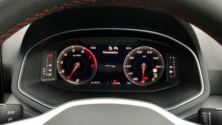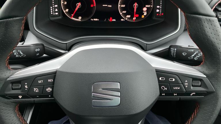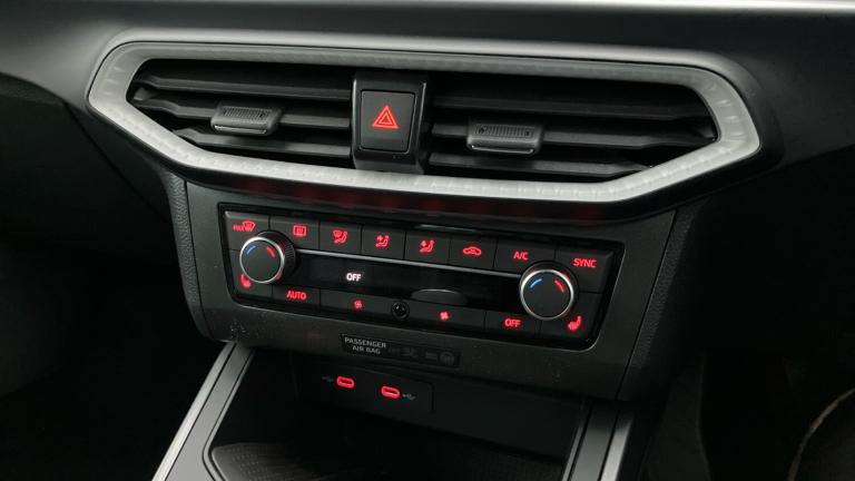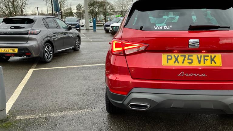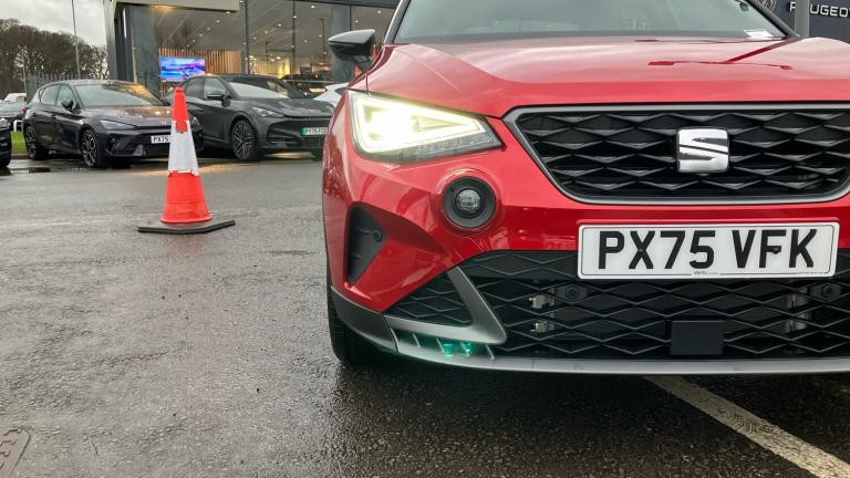 This 2025 SEAT Arona TSI FR Black Edition is practically new, having covered an incredibly low mileage of just 10 miles. As a Euro 6 compliant model, it features a 1.0 litre petrol engine and comes in the stylish FR Black Edition trim. You'll appreciate the convenience of a rear view camera with parking assistance, a wireless phone charger to keep your devices powered up, and heated front seats for added comfort. The dual zone climate control ensures everyone in the car can enjoy their preferred temperature.With an impressive fuel economy of 51 miles per gallon, this Arona offers excellent value for money, making it a more economical choice compared to many other vehicles. Its low CO2 emissions also contribute to its appeal, indicating a more environmentally conscious performance. This combination of low running costs and advanced features makes the SEAT Arona TSI FR Black Edition a compelling option..Air Conditioning, Climate Control, Metallic Paint, Cruise Control, Alloy Wheels, DAB Radio, Bluetooth, Low Mileage, Full Service History, USB, Manufacturer Approved, Adaptive cruise, Apple-Android Play, Rear Camera, Auto Lights& Rain Sensors, Double boot floor, Rear window wash/wipe, Electric front/rear windows, Dark tinted rear windows, Rain sensing wipers, ABS, Traction control, Hill hold control, Emergency Brake Assist (EBA) and front assist, E-call, Park assist system, Rear view camera, Electric speed sensitive power steering, Multi-Collision Braking, RPM counter, SEAT Drive profile - Four different models normal-sport-eco-individual, steering response, throttle response, Lane keeping system, Trip computer, Digital clock, Low fuel warning light, 'Lights On' Reminder warning buzzer, Outside temperature display, Full link smartphone integration with mirror link, wireless apple carplay, Google android auto + USB Type C cable for apple and android devices