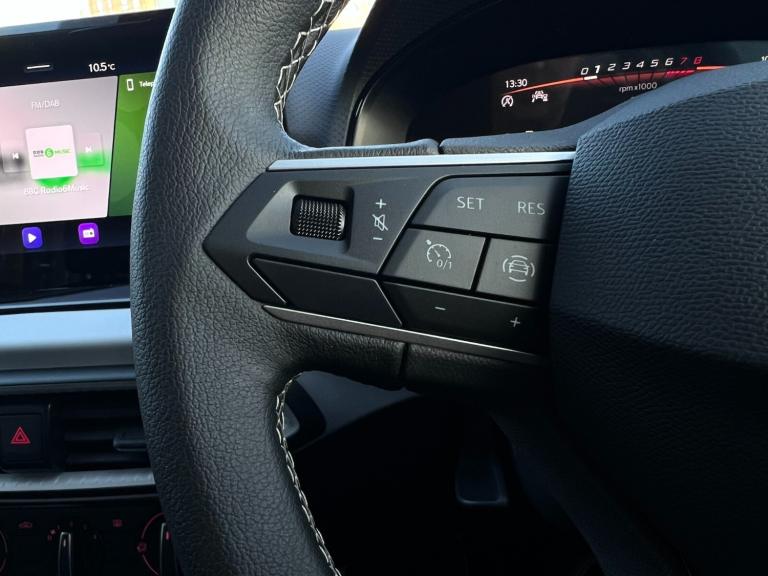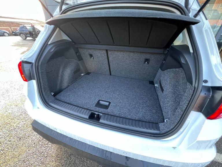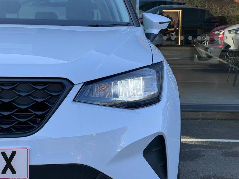 Seat Arona 1.0 TSI 115 SE Technology 5dr DSG..'Lights On' Reminder warning buzzer, 8'' Digital cockpit, Cruise control and speed limiter, Digital clock, E-call, Electric speed sensitive power steering, Full link smartphone integration with mirror link, wireless apple carplay, Google android auto + USB Type C cable for apple and android devices, Lane keeping system, Low fuel warning light, Outside temperature display, RPM counter, Trip computer, Wireless phone charger, 9.2'' colour touchscreen with navigation system, voice control and USB port (type c), Bluetooth interface for hands free and audio streaming, DAB digital radio and AM/FM radio, Steering wheel mounted audio controls, Anti theft roof antenna, Automatic activation of hazard warning lights, Black roof rails and window surrounds, Body coloured bumpers, Body coloured door handle inserts, Body coloured door mirrors, Dimming rear view mirror, ECO LED automatic headlights and LED daytime running lights, Electric adjustable door mirrors, Electric front/rear windows, Hidden exhaust pipe, LED rear tail lights and licence plate lights, Licence plate lights, Protective side mouldings, Rain sensing wipers, Rear fog lights, Rear side wing doors, Rear spoiler, Rear window wash/wipe, Third brake light, Visible VIN plate, 2 cupholders, 3 seat bench in 2nd row, 60/40 split folding rear seat, Air conditioning, Cloth upholstery, Double boot floor, Driver sunvisor with covered mirror + card holder, Dust/pollen filter, Gear shift indicator, Grey interior air vents, Grey interior roof, Height adjustable front seats, Height/reach adjustable steering column, Illuminated boot, Instrument lighting with brightness control, ISOFIX points in outer rear seats with top tether anchorage points, Leather steering wheel/gear knob/handbrake, Passenger sunvisor with vanity mirror, Potentiometer, Single front passenger seat, Two front and three rear height adjustable headrests, Interior chrome pack - Arona, Safe and driving pack (S) - Arona, 3 point seatbelts on all rear seats, ABS, Active front headrests, Child locks on rear doors, Driver and front passenger airbags with front passenger airbag de activation, front side and curtain airbags, Emergency Brake Assist (EBA) and front assist, Forward collision warning and autonomous emergency braking, Front and rear seatbelt reminder, Hill hold control, Multi-Collision braking, Tiredness recognition system, Traction control, Tyre pressure monitoring system, Deadlock, Electronic engine
