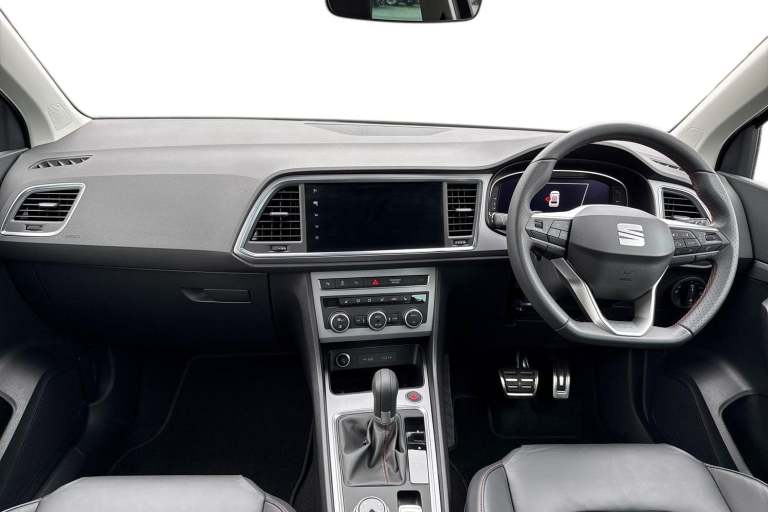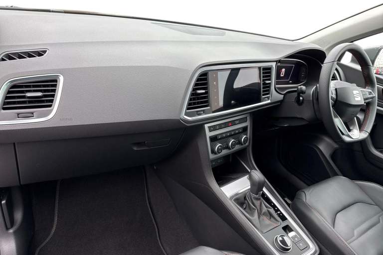 This SEAT Ateca 1.5 TSI EVO FR Sport DSG turns heads on the road thanks to a sleek Magic Black finished exterior that sits on stylish 19"" Exclusive Machined Design Alloy Wheels. Inside, the driver can look forward to a luxurious Leather FR Sport Multifunction Steering Wheel, adding that extra layer of comfort and style to the cabin alongside Heated Front Seats. At the centre of the Ateca youll have access to a simple to operate touch screen display packed with features both entertaining and practical. Apple Car Play and Android Auto are both available while built in Satellite Navigation helps you find those newer destinations with ease. Take advantage of a variety of features designed to make your daily commute run that much smoother. LED Daytime Running Lights combine with LED Rear Lights to provide great visibility all around the vehicle. Cruise Control makes motorway travel effortless while Rear Parking Sensors give you that extra level of confidence when dealing with tricky parking jobs. This vehicle is ULEZ Compliant
