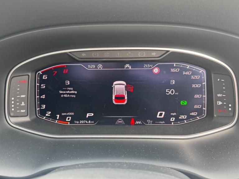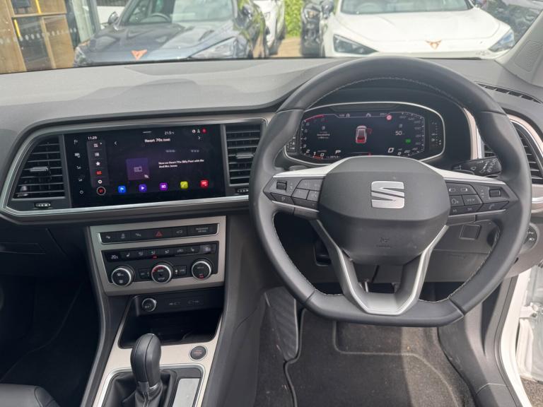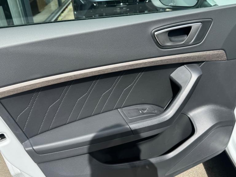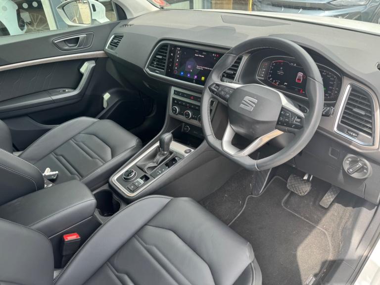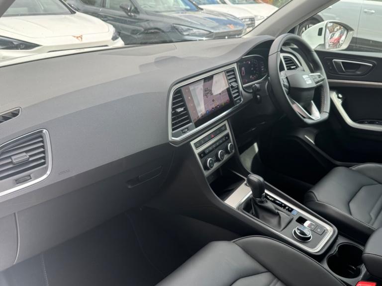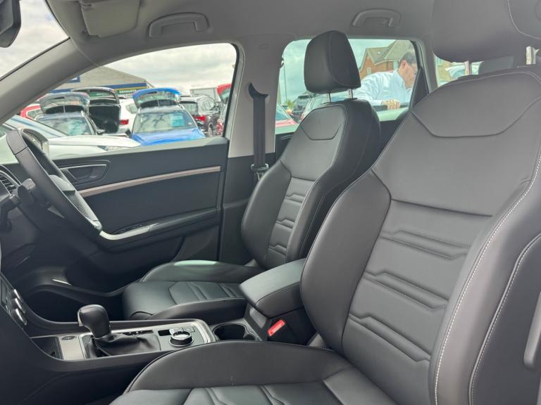 Seat Ateca 1.5 TSI EVO Xperience Lux 5dr DSG.REAR CAMERA!.10'' Digital cockpit, E-call, Electric tailgate with virtual pedal, Outside temperature gauge, Progressive power assisted steering, SEAT drive profile with driving experience button - Normal, Sport, Eco and Individual mode, gearshift, steering and throttle response, Self parking functionality (includes front and rear parking sensors), Start/stop system, Top view camera, Trip computer, wired and wireless full link smartphone integration, Wireless phone charger, Steering wheel mounted audio/phone controls, Black wheel arch surrounds, Body colour bumpers, Chrome front grille frame, Chrome roof rails, Chrome side window trim, Dark tinted rear windows, Daytime running lights, Door mirrors with welcome light silhouette, Dynamic headlight range control with self adjusting whilst driving, Electric adjustable/heated/folding door mirrors, Front and rear electric windows, Front grille hot stamping, Full LED headlamps with lens and LED front fog lamps with cornering function, Heat reflecting windscreen, Illuminated aluminium front door sill, LED 3rd brake light, LED rear tail lights with dynamic indicators, Rear exhaust tailpipe, Rear fog lights, Rear side wing doors, Rear wash/wipe, Reflex silver side mouldings, Variable front intermittent wipers, 12V socket in front, 3 seat bench in 2nd row, 60/40 split folding rear seat, Drawer under right front seat, Dual zone climate control, Front and rear head restraints, Front centre armrest, Front seat back storage pockets, Heated front seats, Heated steering wheel, Height adjustable driver and passenger seat with lumbar adjustment, ISOFIX points in outer rear seats with top tether anchorage points, Leather sports steering wheel and gear knob, Leather upholstery with front comfort seats, Rear armrest and easy back seat release mechanism from boot, Single front passenger seat, Steering wheel mounted gearshift paddles, Convenience pack - Ateca, Interior lighting pack - Ateca, Navigation system pack with DAB - Ateca, Safety and driving pack (L) - Ateca, Safety and driving pack with attention and drowsiness assist - Ateca, 3x3 point rear seatbelts, ABS, Traction control system (TCS), Electronic stability control (ESC) and Electronic differential lock system (XDS), Airbags - Driver and front passenger airbag with deactivation, front side, two curtain and driver's knee airbags, Electric parking brake with auto hold function, Front and rear seatbelt reminder, Hill hold