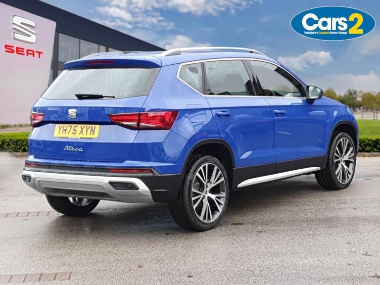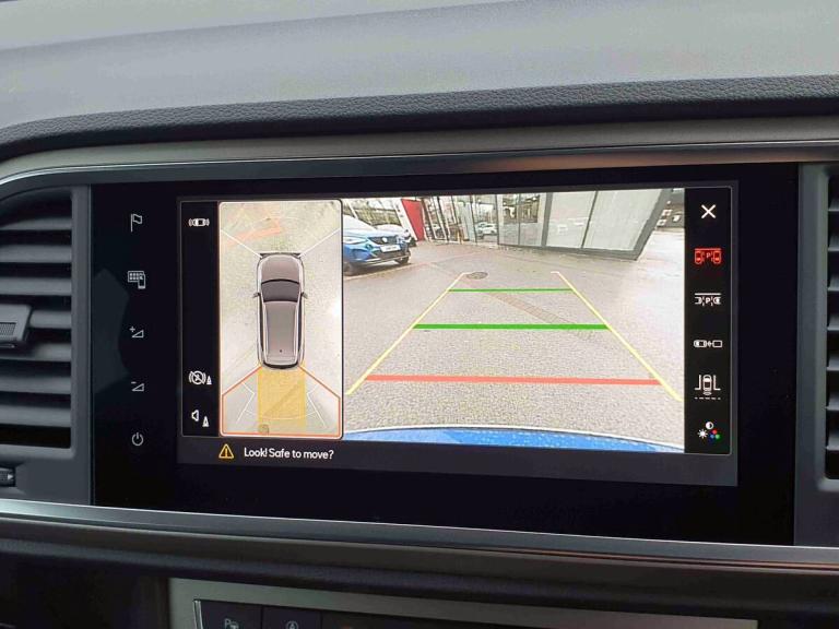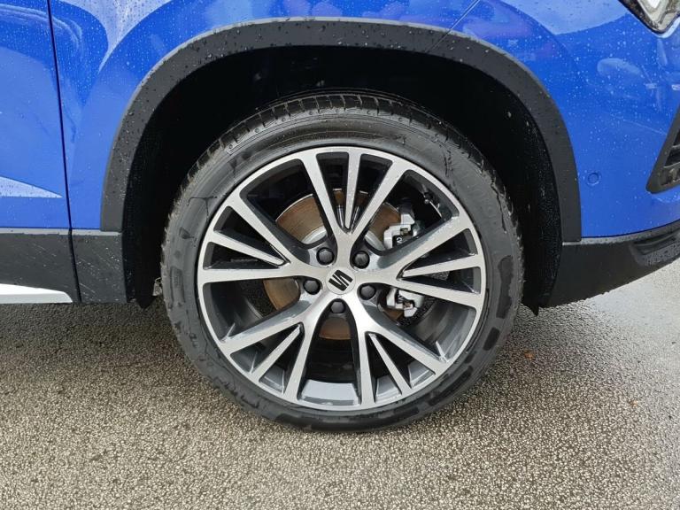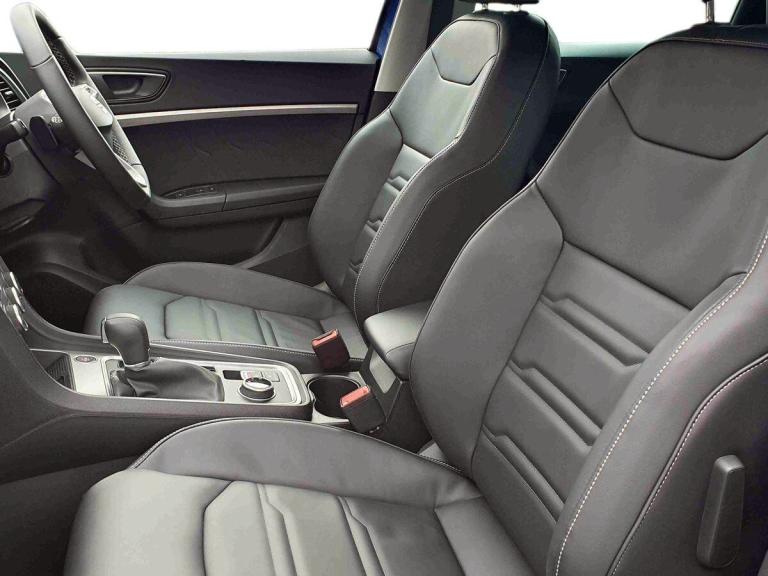 ..10'' Digital cockpit, E-call, Electric tailgate with virtual pedal, Outside temperature gauge, Progressive power assisted steering, SEAT drive profile with driving experience button - Normal, Sport, Eco and Individual mode, gearshift, steering and throttle response, Self parking functionality (includes front and rear parking sensors), Start/stop system, Top view camera with rear view camera, Trip computer, wired and wireless full link smartphone integration, Wireless phone charger, Steering wheel mounted audio/phone controls, Black wheel arch surrounds, Body colour bumpers, Chrome front grille frame, Chrome roof rails, Chrome side window trim, Dark tinted rear windows, Daytime running lights, Door mirrors with welcome light silhouette, Dynamic headlight range control with self adjusting whilst driving, Electric adjustable/heated/folding door mirrors, Front and rear electric windows, Front grille hot stamping, Full LED headlamps with lens and LED front fog lamps with cornering function, Heat reflecting windscreen, Illuminated aluminium front door sill, LED 3rd brake light, LED rear tail lights with dynamic indicators, Rear exhaust tailpipe, Rear fog lights, Rear side wing doors, Rear wash/wipe, Reflex silver side mouldings, Variable front intermittent wipers, 12V socket in front, 3 seat bench in 2nd row, 60/40 split folding rear seat, Drawer under right front seat, Dual zone climate control, Front and rear head restraints, Front centre armrest, Front seat back storage pockets, Heated front seats, Heated steering wheel, Height adjustable driver and passenger seat with lumbar adjustment, ISOFIX points in outer rear seats with top tether anchorage points, Leather sports steering wheel and gear knob, Leather upholstery with front comfort seats, Rear armrest and easy back seat release mechanism from boot, Single front passenger seat, Steering wheel mounted gearshift paddles, Convenience pack - Ateca, Interior lighting pack - Ateca, Navigation system pack with DAB - Ateca, Safety and driving pack (L) - Ateca, Safety and driving pack with attention and drowsiness assist - Ateca, 3x3 point rear seatbelts, ABS, Traction control system (TCS), Electronic stability control (ESC) and Electronic differential lock system (XDS), Airbags - Driver and front passenger airbag with deactivation, front side, two curtain and driver's knee airbags, Electric parking brake with auto hold function, Front and rear seatbelt reminder, Hill hold control, Manual rear child locks,