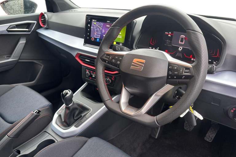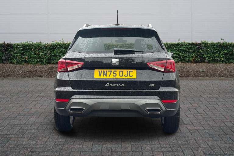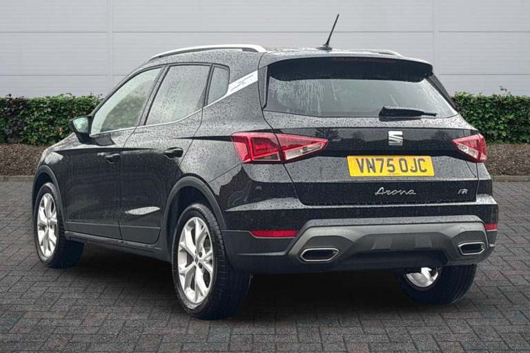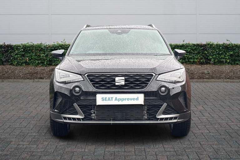 Available from 03/05/2026. SEAT Arona Hatchback 1.0 TSI 115 FR 5dr in Midnight Black Grey Roof. Specification Includes Exterior Features,Metallic Paint With Contrast Roof,Audio / Communications,6 Speakers,Interior Features,Daring Red Illuminated Coloured Air Vent,Packs,Safety And Driving Pack (m) - Arona,Wheels,Emergency Tyre Repair Kit,Paint - Metallic,Metallic - Midnight Black With Grey Roof,Trim - Cloth,Cloth - Navy/Black,Exterior Features,Dark Tinted Rear Windows,Electric Front/Rear Windows,Rain Sensing Wipers,Rear Window Wash/Wipe,Anti Theft Roof Antenna,Body Coloured Bumpers,Body Coloured Door Handle Inserts,Chrome Roof Rails And Window Surrounds,Protective Side Mouldings,Rear Side Wing Doors,Rear Spoiler,Twin Exhaust Pipe Styling Hidden Exhaust Pipe,Visible Vin Plate,Automatic Activation Of Hazard Warning Lights,Front Fog Lights With Cornering Function And Rear Fog Light,Full Led Automatic Headlights With Dynamic Headlight Range Control- Coming And Leaving Home- Led Daytime Running Lights,Led Rear Tail Lights And Licence Plate Lights,Third Brake Light,Safety,Abs,Emergency Brake Assist (eba) And Front Assist,Hill Hold Control,Multi-Collision Braking,Traction Control,Electric Speed Sensitive Power Steering,Lane Keeping System,Seat Drive Profile - Four Different Models Normal-Sport-Eco-Individual- Steering Response- Throttle Response,Auto Dimming Interior Rear View Mirror,Electrically Adjustable- Heated And Folding Door Mirrors,Roof Colour Door Mirrors,3 Point Seatbelts On All Rear Seats,Active Front Headrests,Child Locks On Rear Doors,Driver And Front Passenger Airbags With Front Passenger Airbag De Activation- Front Side And Curtain Airbags,Front And Rear Seatbelt Reminder,Tiredness Recognition System,Tyre Pressure Monitoring System,Audio / Communications,E-Call,9.2in Colour Touchscreen With Navigation System- Voice Control And Usb Port (type C),Bluetooth Interface For Hands Free And Audio Streaming,Dab Digital Radio And Am/Fm Radio,Steering Wheel Mounted Audio Controls,Driver Convenience,Wireless Phone Charger,Miscellaneous,'lights On' Reminder Warning Buzzer,8in Digital Cockpit,Digital Clock,Full Link Smartphone Integration With Mirror Link- Wireless Apple Carplay- Google Android Auto + Usb Type C Cable For Apple And Android Devices,Low Fuel Warning Light,Outside Temperature Display,Rpm Counter,Trip Computer,Trim,Titan Black Dashboard,3 Seat Bench In 2nd Row,60/40 Split Folding Rear Seat,Height Adjustable Front Seats,Isofix Points In Outer Rear