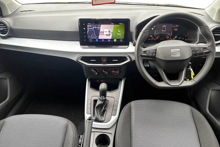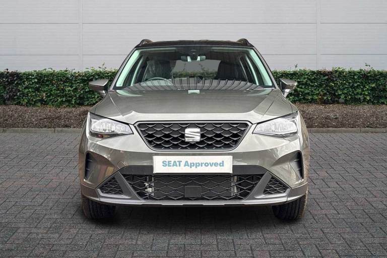 Available from 03/05/2026. SEAT Arona Hatchback 1.0 TSI 115 SE Technology 5dr DSG in Mountain Green With Black Roof. Specification Includes Exterior Features,Metallic Paint With Contrast Roof,Audio / Communications,6 Speakers,Wheels,Emergency Tyre Repair Kit,Paint - Metallic,Metallic - Mountain Green With Black Roof,Trim - Cloth,Cloth - Black,Exterior Features,Electric Front/Rear Windows,Rain Sensing Wipers,Rear Window Wash/Wipe,Anti Theft Roof Antenna,Black Roof Rails And Window Surrounds,Body Coloured Bumpers,Body Coloured Door Handle Inserts,Hidden Exhaust Pipe,Protective Side Mouldings,Rear Side Wing Doors,Rear Spoiler,Visible Vin Plate,Automatic Activation Of Hazard Warning Lights,Eco Led Automatic Headlights And Led Daytime Running Lights,Led Rear Tail Lights And Licence Plate Lights,Licence Plate Lights,Rear Fog Lights,Third Brake Light,Safety,Abs,Emergency Brake Assist (eba) And Front Assist,Forward Collision Warning And Autonomous Emergency Braking,Hill Hold Control,Multi-Collision Braking,Traction Control,Cruise Control And Speed Limiter,Electric Speed Sensitive Power Steering,Lane Keeping System,Body Coloured Door Mirrors,Dimming Rear View Mirror,Electric Adjustable Door Mirrors,3 Point Seatbelts On All Rear Seats,Active Front Headrests,Child Locks On Rear Doors,Driver And Front Passenger Airbags With Front Passenger Airbag De Activation- Front Side And Curtain Airbags,Front And Rear Seatbelt Reminder,Tiredness Recognition System,Tyre Pressure Monitoring System,Audio / Communications,E-Call,9.2in Colour Touchscreen With Navigation System- Voice Control And Usb Port (type C),Bluetooth Interface For Hands Free And Audio Streaming,Dab Digital Radio And Am/Fm Radio,Steering Wheel Mounted Audio Controls,Driver Convenience,Wireless Phone Charger,Miscellaneous,'lights On' Reminder Warning Buzzer,8in Digital Cockpit,Digital Clock,Full Link Smartphone Integration With Mirror Link- Wireless Apple Carplay- Google Android Auto + Usb Type C Cable For Apple And Android Devices,Low Fuel Warning Light,Outside Temperature Display,Rpm Counter,Trip Computer,Trim,Titan Black Dashboard,3 Seat Bench In 2nd Row,60/40 Split Folding Rear Seat,Height Adjustable Front Seats,Isofix Points In Outer Rear Seats With Top Tether Anchorage Points,Single Front Passenger Seat,Two Front And Three Rear Height Adjustable Headrests,Interior Features,Air Conditioning,Dust/Pollen Filter,2 Cupholders,Cloth Upholstery,Double Boot Floor,Gear Shift Indicator,Grey Interior Air Vents,Grey