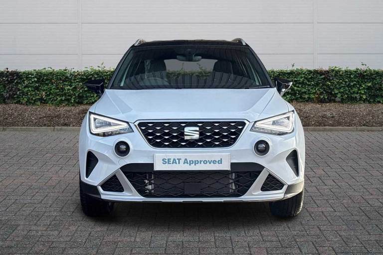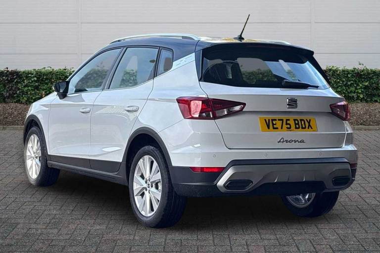 Available from 03/05/2026. SEAT Arona Hatchback 1.0 TSI 115 XPERIENCE 5dr in Glacial White With Black Roof. Specification Includes Exterior Features,Metallic Paint With Contrast Roof,Audio / Communications,6 Speakers,Interior Features,Aran Green Illuminated Coloured Air Vent,Wheels,Emergency Tyre Repair Kit,Paint - Metallic,Metallic - Glacial White With Black Roof,Trim - Cloth,Cloth - Sano Textrim,Exterior Features,Electric Front/Rear Windows,Rain Sensing Wipers,Rear Window Wash/Wipe,Anti Theft Roof Antenna,Body Coloured Bumpers,Body Coloured Door Handle Inserts,Chrome Roof Rails And Window Surrounds,Hidden Exhaust Pipe,Protective Side Mouldings,Rear Side Wing Doors,Rear Spoiler,Visible Vin Plate,Automatic Activation Of Hazard Warning Lights,Front Fog Lights With Cornering Function And Rear Fog Light,Full Led Automatic Headlights With Dynamic Headlight Range Control- Coming And Leaving Home- Led Daytime Running Lights,Led Rear Tail Lights And Licence Plate Lights,Third Brake Light,Safety,Abs,Emergency Brake Assist (eba) And Front Assist,Hill Hold Control,Multi-Collision Braking,Traction Control,Electric Speed Sensitive Power Steering,Lane Keeping System,Auto Dimming Interior Rear View Mirror,Electrically Adjustable- Heated And Folding Door Mirrors,Roof Colour Door Mirrors,3 Point Seatbelts On All Rear Seats,Active Front Headrests,Child Locks On Rear Doors,Driver And Front Passenger Airbags With Front Passenger Airbag De Activation- Front Side And Curtain Airbags,Front And Rear Seatbelt Reminder,Tiredness Recognition System,Tyre Pressure Monitoring System,Audio / Communications,E-Call,9.2in Colour Touchscreen With Navigation System- Voice Control And Usb Port (type C),Bluetooth Interface For Hands Free And Audio Streaming,Dab Digital Radio And Am/Fm Radio,Steering Wheel Mounted Audio Controls,Driver Convenience,Wireless Phone Charger,Miscellaneous,'lights On' Reminder Warning Buzzer,8in Digital Cockpit,Digital Clock,Full Link Smartphone Integration With Mirror Link- Wireless Apple Carplay- Google Android Auto + Usb Type C Cable For Apple And Android Devices,Low Fuel Warning Light,Outside Temperature Display,Rpm Counter,Trip Computer,Trim,Titan Black Dashboard,3 Seat Bench In 2nd Row,60/40 Split Folding Rear Seat,Height Adjustable Front Seats,Isofix Points In Outer Rear Seats With Top Tether Anchorage Points,Single Front Passenger Seat,Two Front And Three Rear Height Adjustable Headrests,Interior Features,Aircare Filter,Dual Zone Climate Control,2