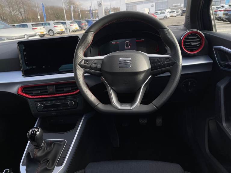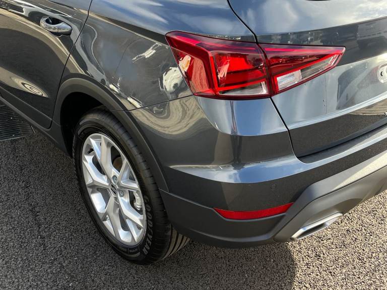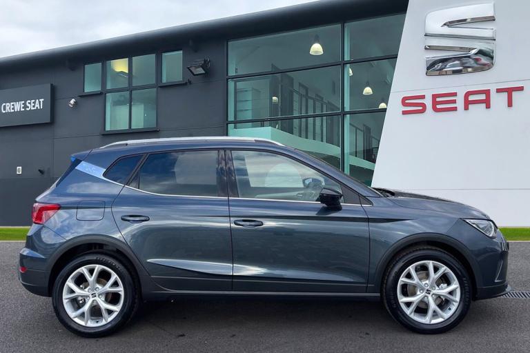 The brand new SEAT Arona 1.0 TSI FR in Magnetic Tech Grey is a stylish and efficient compact SUV that offers a blend of performance, practicality, and advanced technology. Powered by a 1.0-litre turbocharged petrol engine, it delivers 115 PS, ensuring a responsive and fuel-efficient drive. The choice of a 6-speed manual or 7-speed DSG automatic transmission provides smooth and versatile driving options. Inside, the Arona features a modern and well-appointed cabin with seating for five. The digital cockpit and 9.2"" touchscreen navigation system keep you connected and entertained, featuring wireless Apple CarPlay and Android Auto for seamless smartphone integration. The Climatronic dual-zone climate control ensures a comfortable environment for all passengers, while the FR sport seats with contrast stitching add a touch of style and support. Safety and convenience are prioritized with standard features such as adaptive cruise control, lane-keeping assist, and a rearview camera. The full LED headlights and taillights enhance visibility and add to the vehicles striking design. The 17"" alloy wheels complete the sporty and stylish look of the SEAT Arona. Overall, the SEAT Arona 1.0 TSI FR in Magnetic Tech Grey is a versatile and stylish compact SUV that offers a perfect blend of performance, efficiency, and advanced technology, making it an excellent choice for those seeking a dynamic and practical vehicle for everyday use.