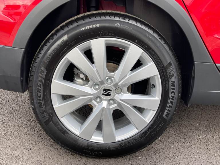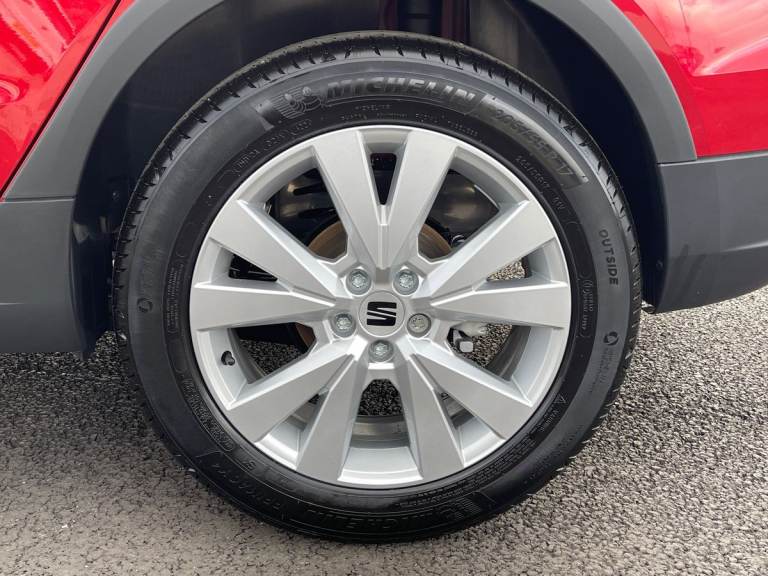 The Brand New SEAT Arona 1.0 TSI XPERIENCE in Desire Red is a stylish and versatile compact SUV that offers a blend of performance, practicality, and advanced technology. Powered by a 1.0-litre turbocharged petrol engine, it delivers 115 PS, ensuring a responsive and fuel-efficient drive. The choice of a 6-speed manual or 7-speed DSG automatic transmission provides smooth and versatile driving options. Inside, the Arona XPERIENCE features a modern and well-appointed cabin with seating for five. The digital cockpit and 9.2"" touchscreen navigation system keep you connected and entertained, featuring wireless Apple CarPlay and Android Auto for seamless smartphone integration. The Climatronic dual-zone climate control ensures a comfortable environment for all passengers, while the seats in Sano Textrim cloth add a touch of style and comfort. Safety and convenience are prioritized with standard features such as adaptive cruise control, lane-keeping assist, and a rearview camera. The full LED headlights and taillights enhance visibility and add to the vehicles striking design. The 17"" alloy wheels complete the sporty and stylish look of the SEAT Arona XPERIENCE. Overall, the SEAT Arona 1.0 TSI XPERIENCE in Desire Red is a versatile and stylish compact SUV that offers a perfect blend of performance, efficiency, and advanced technology, making it an excellent choice for those seeking a dynamic and practical vehicle for everyday use.