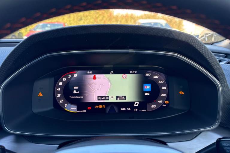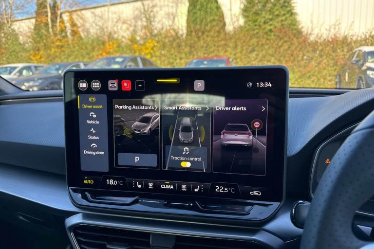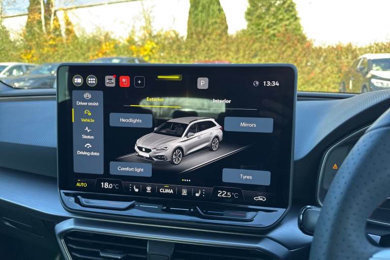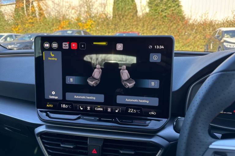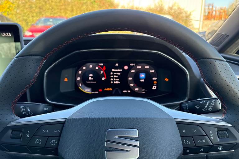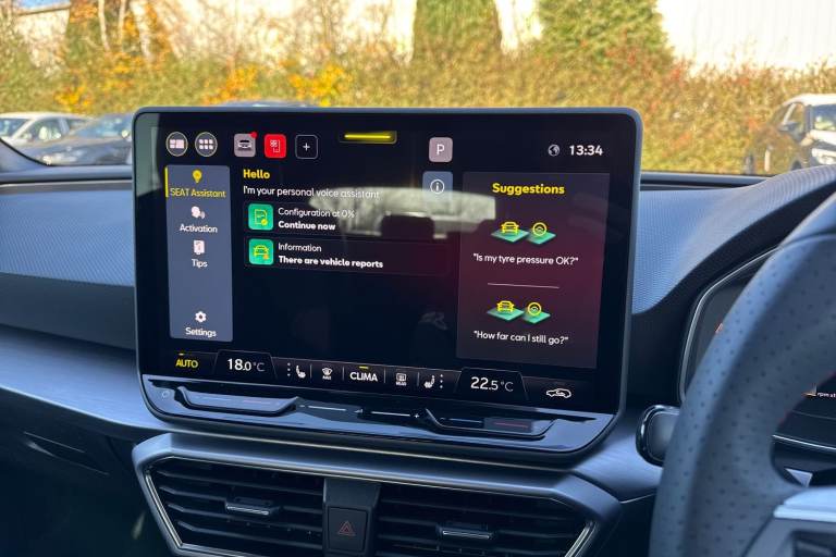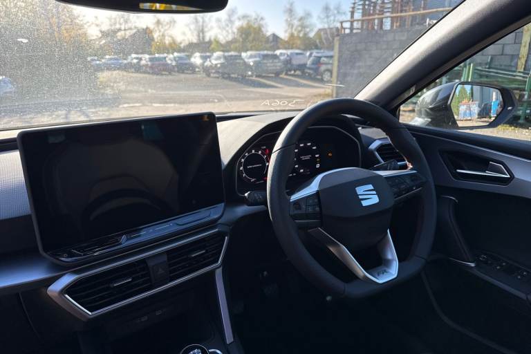 The SEAT Leon 1.5 TSI FR Black Edition Euro 6 (s/s) 5dr in Midnight Black combines sporty style with cutting-edge technology and premium comfort. Its striking presence is enhanced by 18-inch black alloy wheels, a black roof spoiler, black side skirts, and FR sport bumpers, while dark-tinted rear windows add a sleek, dynamic edge. The Matrix LED headlights, LED front and rear fog lights, and panoramic sunroof elevate both aesthetics and visibility. Inside, the cabin offers a refined atmosphere with ambient and wraparound interior lighting, chrome detailing, and heated front seats paired with a heated leather steering wheel. The digital cockpit with a multi-function display works alongside the Media System Plus with navigation, delivering a seamless infotainment experience that supports wireless Apple CarPlay, wired Android Auto, and Mirror Link. Convenience and safety are at the forefront, with features such as KESSY Advance keyless entry, wireless phone charging, four USB Type-C ports, cruise control, lane assist, front assist, park assist, and a rear-view camera. The Driver Assistance Pack, SEAT Drive Profile, and start-stop with regenerative braking ensure an engaging yet efficient drive, while the electric parking brake and Full Link smartphone integration complete the package for a modern, connected journey This vehicle is compliant with the Ultra Low Emission Zone (ULEZ) standards! This is the Cash Price for the vehicle, Price shown is the Cash Price, no hidden T&Cs...