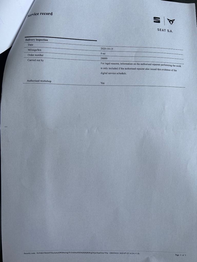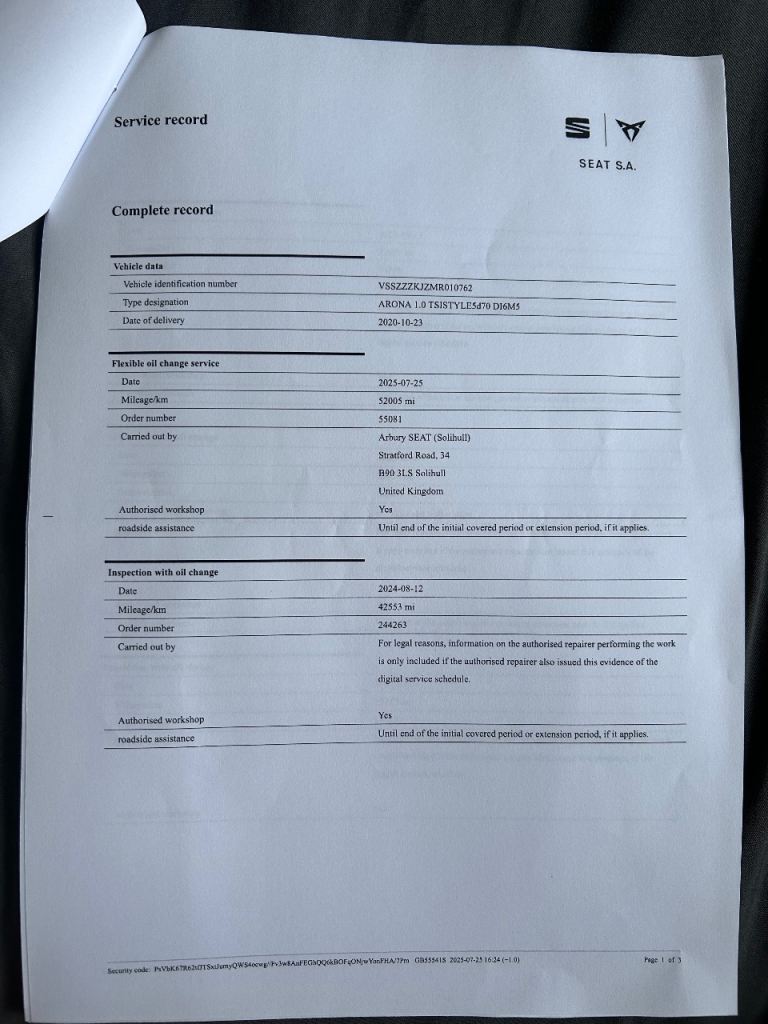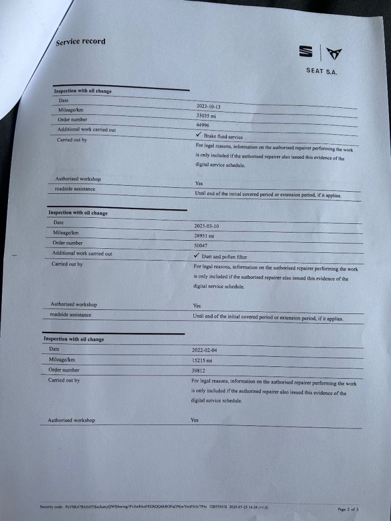 • Full SEAT service history