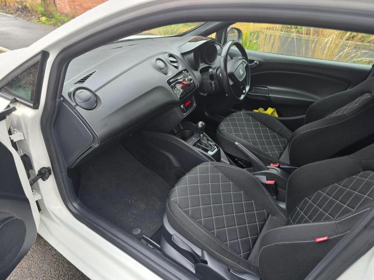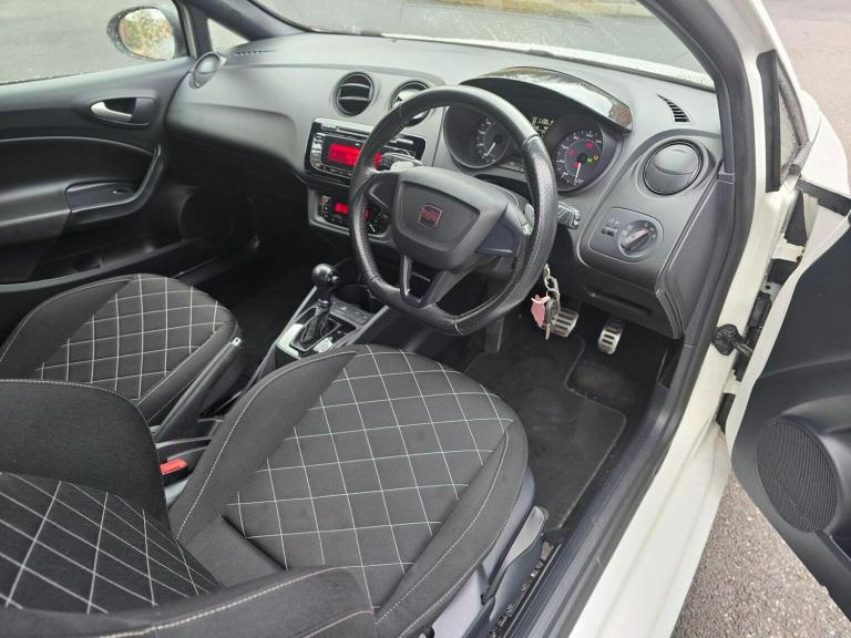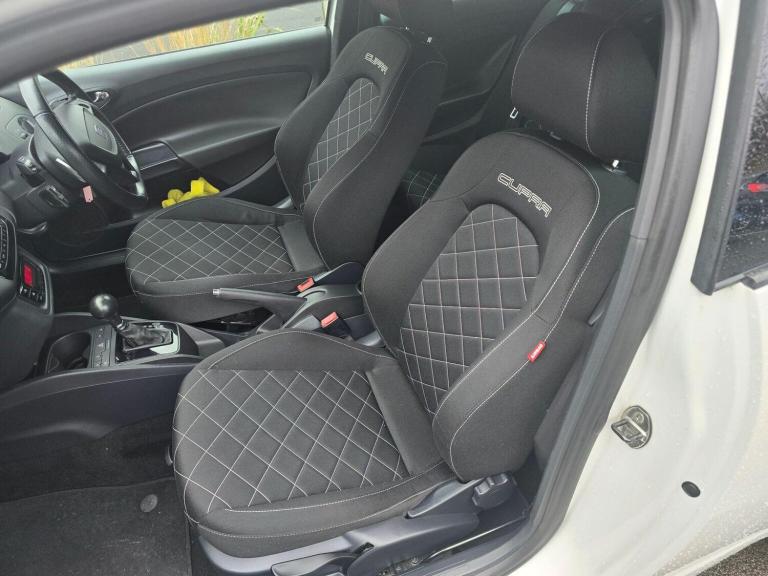 This 2010 SEAT Ibiza TSI Cupra boasts exceptionally low mileage for its age, having covered just 77,086 miles. This particular example comes with a full service history and a clear vehicle history check, offering peace of mind to its next owner. The 1.4 litre petrol engine is paired with the Cupra trim, providing a sporty and engaging driving experience. Experience exhilarating performance with this Ibiza, capable of accelerating from 0 to 62 miles per hour in a swift 7.2 seconds, a notable advantage over many similar vehicles. A 12 month MOT will be provided upon purchase, and the car is offered with a 3 month warranty, further underscoring its excellent condition and value. Newly refurbished gloss black alloys to match with the side mirrors gives it a great colour combination. Full service history along with two keys available shows that this car is well maintained and has been take care off regardless of the the expenses