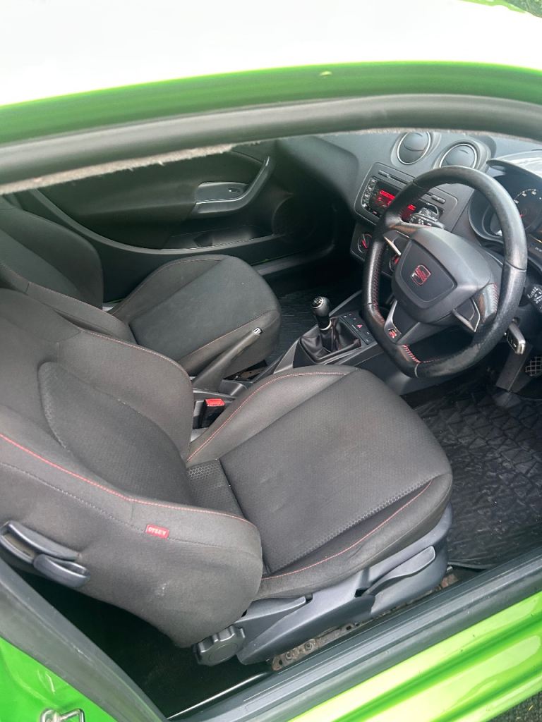Seat Ibiza in the best colour, drives superbly,amazing on fuel,cheap tax,comes with 2 keys, 12 months mot 6 main dealer stamps and 1 specialist, loads of spec being the FR model, air con , tinted glass, has a small ding in the drivers wing , an a few marks but generally a great car , first car ?