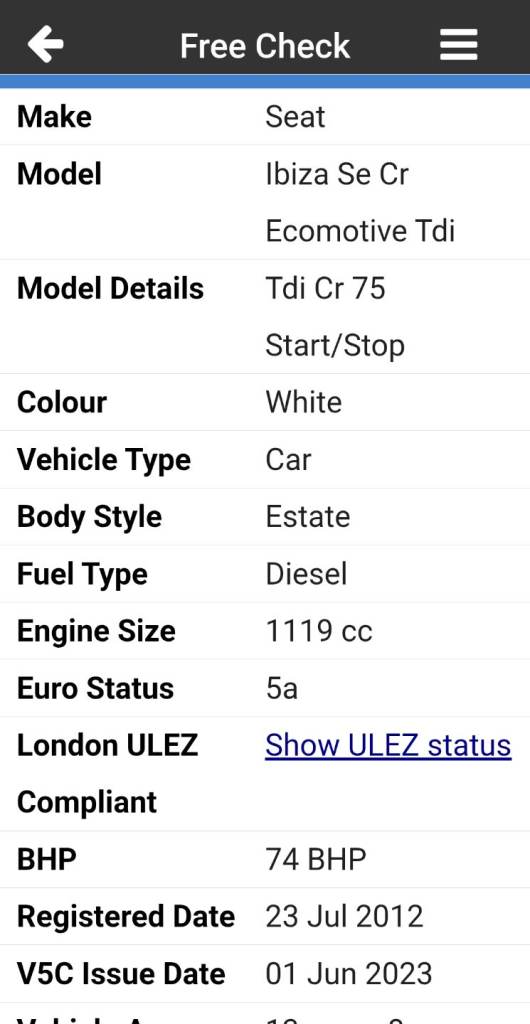 Our vehicle history check is provided for guidance only. Please check all the details with the seller before purchasing