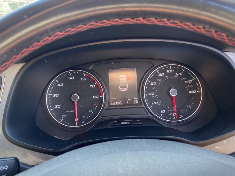 Seat Leon FR Technology TSI (150 BHP) in good condition, well looked after. Some age related marks externally, some cracking on the drivers seat bolster, but generally very good all around, it’s been our family car for over 5 years