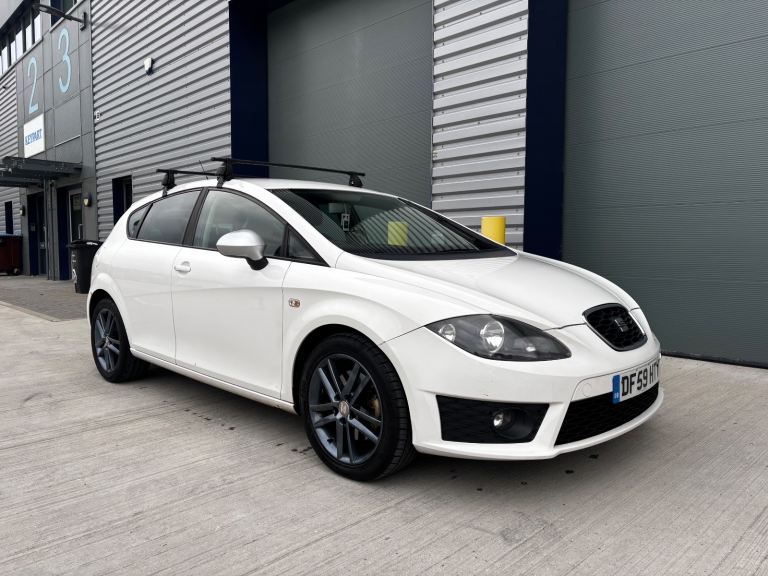 SEAT LEON 2.0 TDI FR 5 DOOR IN WHITE 2010 59 PLATE ONLY DONE 126K JUST HAD NEW TIMING BELT + WATER PUMP DONE AT 18/08/2025 AND ENGINE SERVICE M.O.T 18-AUGUST 2026 £195 TAX PER YEAR HPI CLEAR FULL F.R SPORTS INTERIOR 17INCH ALLOYS SILVER MIRRORS PRIVACY GLASS ROOF BARS E/WINDOWS E/F/MIRRORS POWER STEERING AIR BAGS AIR CON C.D PLAYER + AUX + USB LOOKS AND DRIVES LOVELY 1 LITTLE DENT ON THE BACK BOOT DELIVERY AVAILABLE AT EXTRA COST