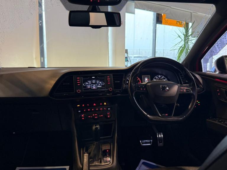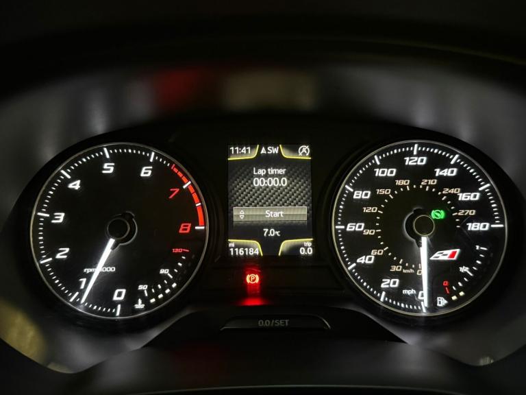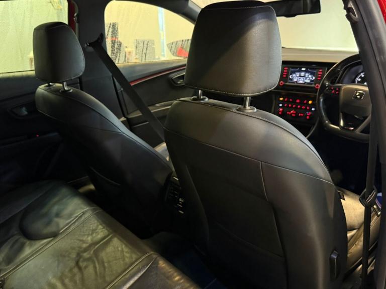The 2014 SEAT Leon Cupar 280 is powered by a turbocharged 2.0-litre TSI petrol engine producing an impressive 280PS, paired with a quick-shifting DSG automatic gearbox for rapid acceleration and smooth performance. With its sport-tuned suspension, electronic limited-slip differential and selectable driving modes, it delivers sharp handling and an engaging driving experience. The Cupar styling includes aggressive body styling, large alloy wheels, rear spoiler, twin exhaust system and distinctive Cupar badging. Inside, it features sports bucket seats, flat-bottom multifunction steering wheel, touchscreen infotainment system with Bluetooth connectivity, DAB radio, dual-zone climate control, cruise control and ambient interior lighting. Safety and driver assistance systems include ABS, electronic stability control, traction control, multiple airbags, ISOFIX child seat points and tyre pressure monitoring. Combining hot hatch performance with everyday practicality and a spacious boot, the Leon Cupar 280 offers thrilling performance without compromising comfort. The specification and technical details in this advert are pulled through from a third-party source. MB Motor Group therefore cannot guarantee or warrant the accuracy of this information. We therefore kindly ask customers to check the specification of their chosen car to ensure it meets all of their requirements prior to purchase.