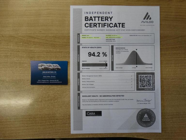 This is a superb one previous owner SEAT Mii (same as VW UP! and Skoda Citigo) EV Electric Vehicle presented in truly exceptional condition throughout. The car comes with a full service history from new mostly from SEAT. The vehicle has been owned by one of our director's family members and was supplied by ourselves 2 years ago. An AVILOO Battery Condition Certificate is also supplied with the car showing 94.2% efficiency. The vehicle is only being sold as the aforementioned family member has upgraded to a Cupra Born EV that has also been supplied by ourselves. I can honestly say they are a fantastic city car, nippy, comfortable, very easy to drive and cost nothing to run (less than £4 for a full charge on Economy 7 overnight and only £3.10 on Octopus EV). This great little car has a superb real world range of around 160 miles (222 miles range official) and can be fast charged with a 7.4KW home/public charger in less than 6 hours. The vehicle also supports rapid DC charging and can be fully charged from 0% to 80% in less than an hour. Great Specification Includes Apple Car Play/Android Auto, Air Conditioning, 2 Stage Heated Front Seats, Bluetooth Telephone, Bluetooth Audio Streaming, Remote Central Locking, DAB Radio with MP3/USB/AUX Player, Electric Windows, ASR/Traction Control, Lane Departure Assist plus all usual refinements. ZERO EMISSIONS, ULEZ/LEZ/CAZ COMPLIANT, FREE PARKING IN SOME CITIES, 1st to see will buy this superb vehicle, over 120 vehicles ready to drive away. ASK ABOUT OUR PROMPT NATIONWIDE DELIVERY SERVICE.