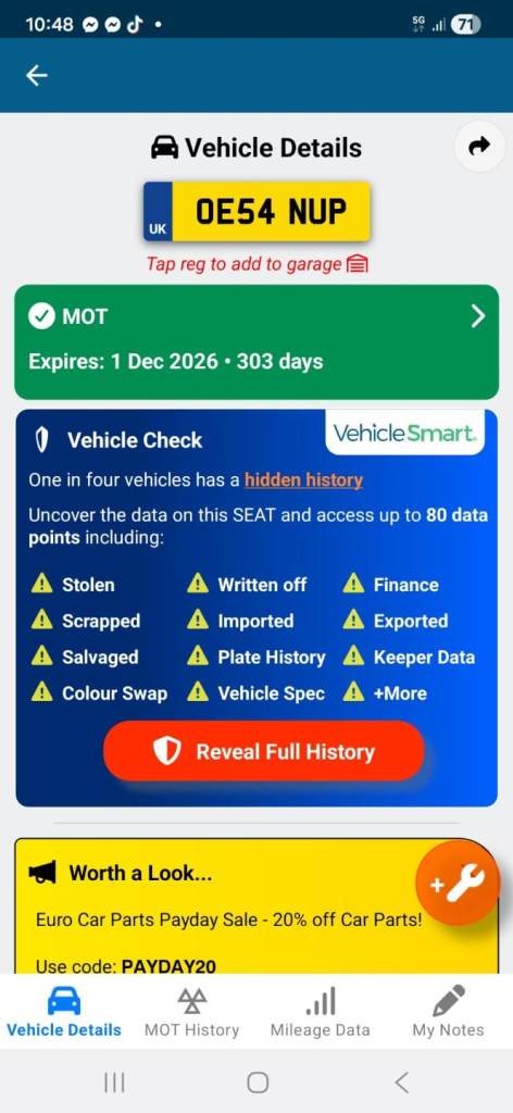 Buy the full report for guaranteed data accuracy, outstanding finance, valuation, milage check & VIN match for £9.99 (normally £19.99)