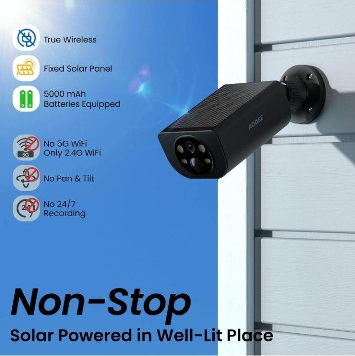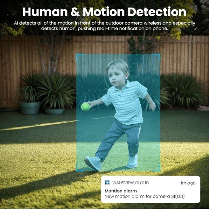 PIR Detection & Real-time alert: The outdoor security camera will continuously guard your property by recording alert videos and send instant alarm notifications via the app. The solar outdoor camera has PIR sensor and AI detection which is smart enough to recognize people or other moving objects to reduce false alarms