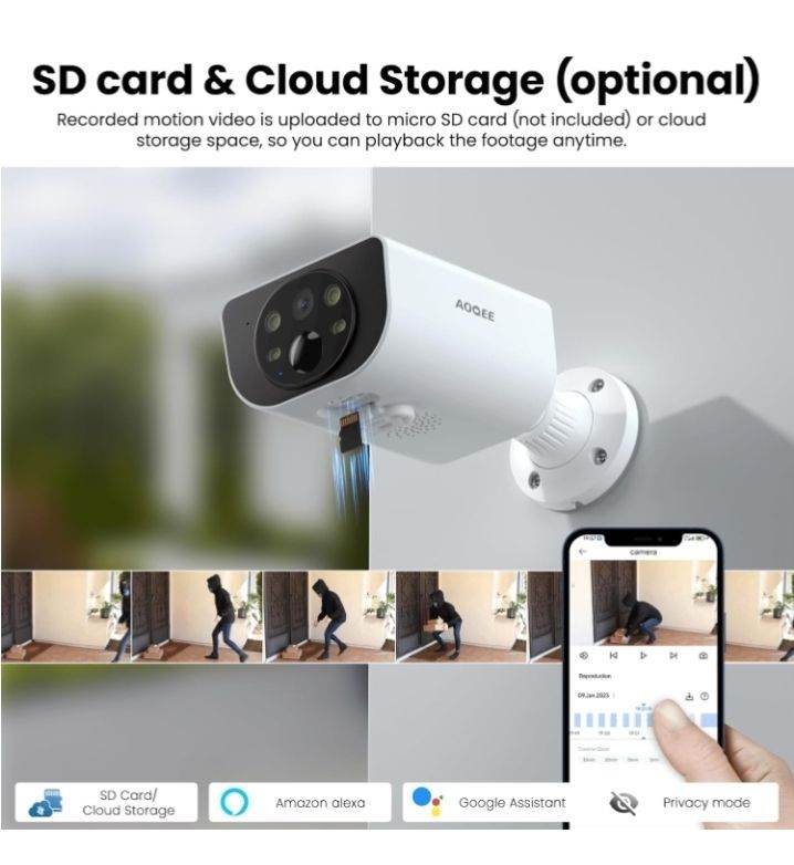 AOQEE Security Camera Outdoor Wireless Solar - 2K CCTV Camera Systems, Battery Operated Home/House Security, PIR Detection, IP65, Colour Night Vision, TF card/Cloud Storage, S1 Black